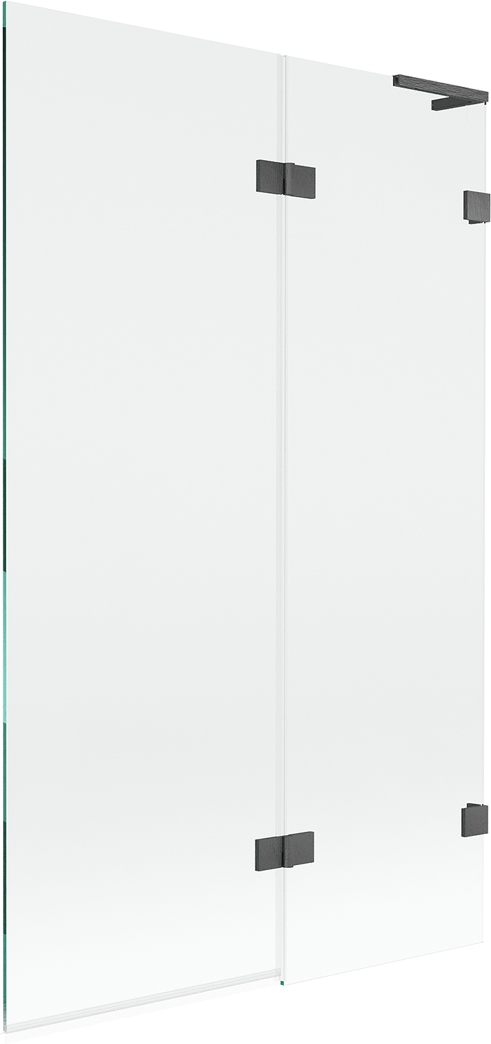 Paravento realizzato con due ante pieghevoli. Questa soluzione consente di risparmiare più spazio nel bagno e permette di utilizzare liberamente l'area restante quando non si utilizza la zona doccia.