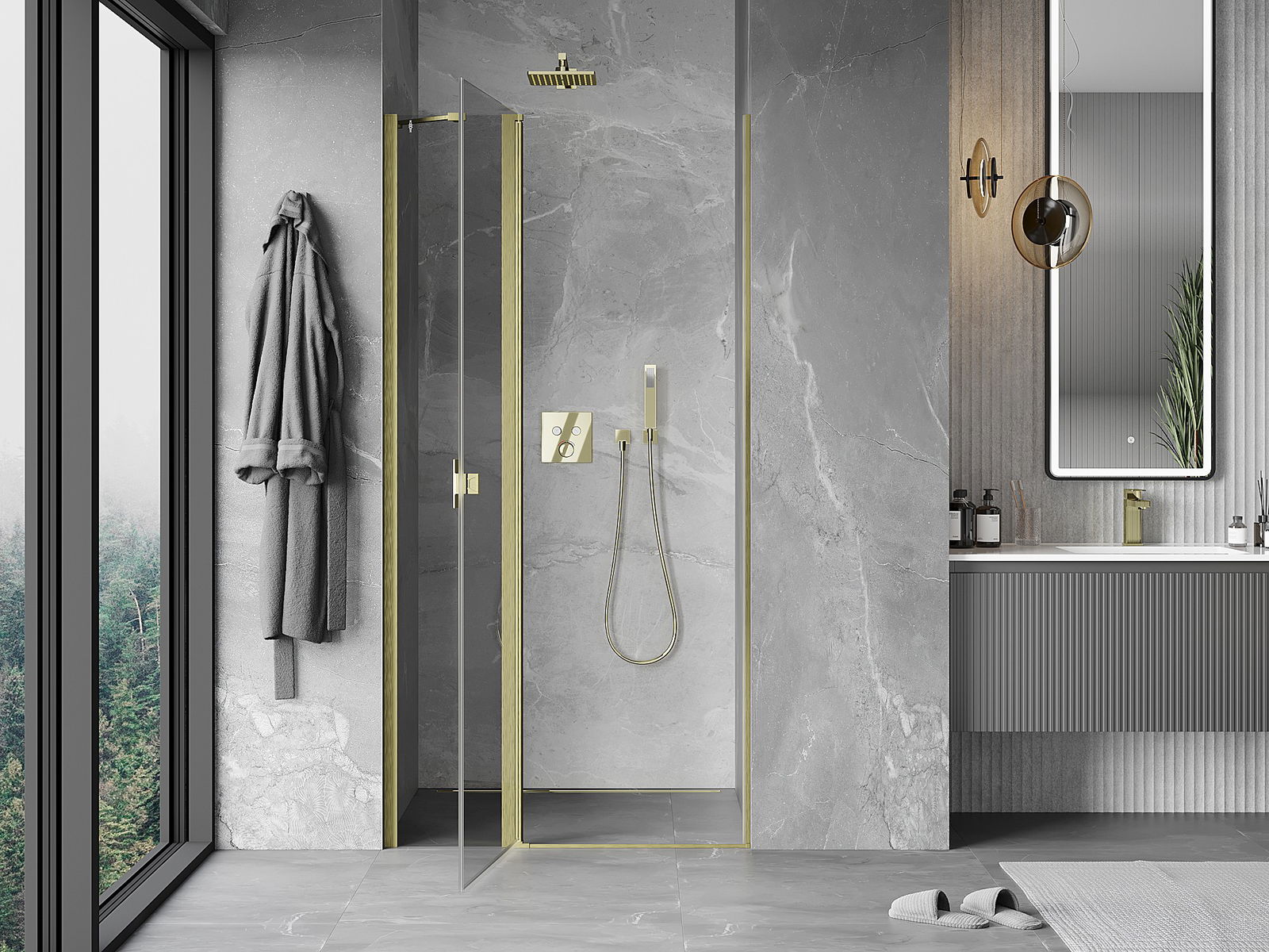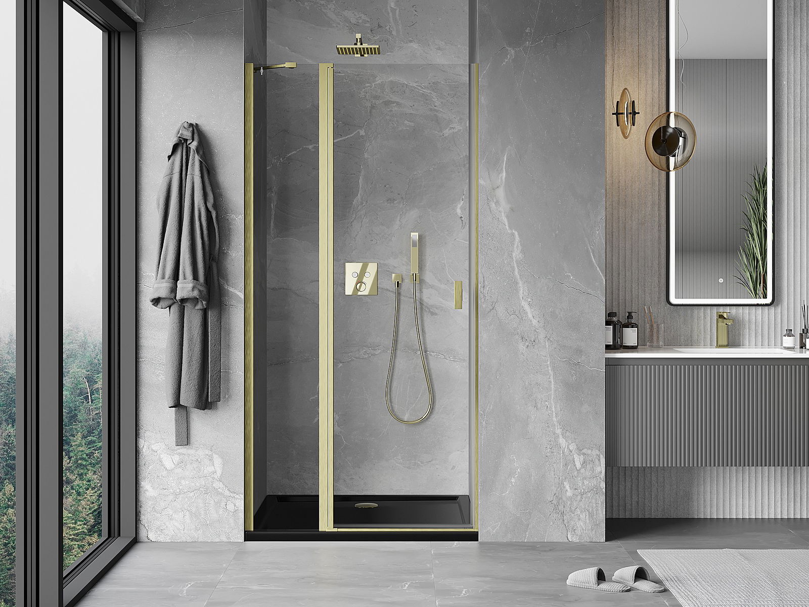 Mexen Mist porta doccia battente 90 cm, trasparente, oro spazzolato - 8A4-090-000-55-00