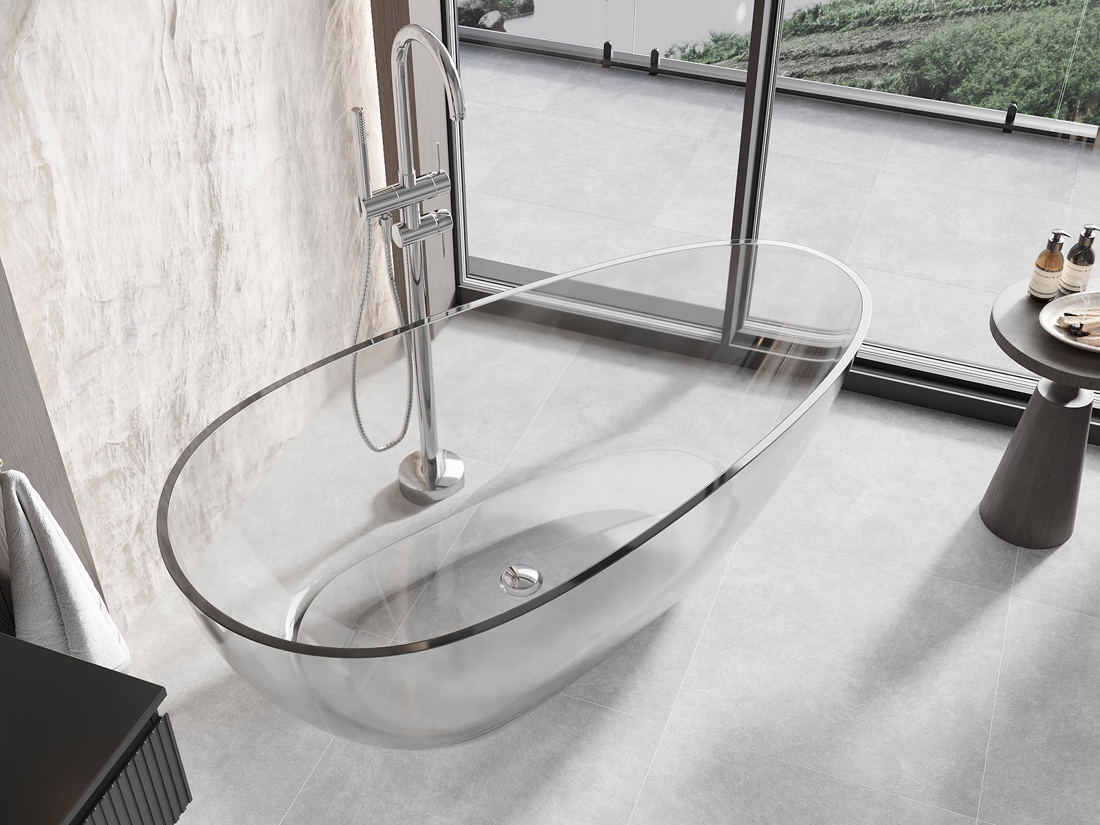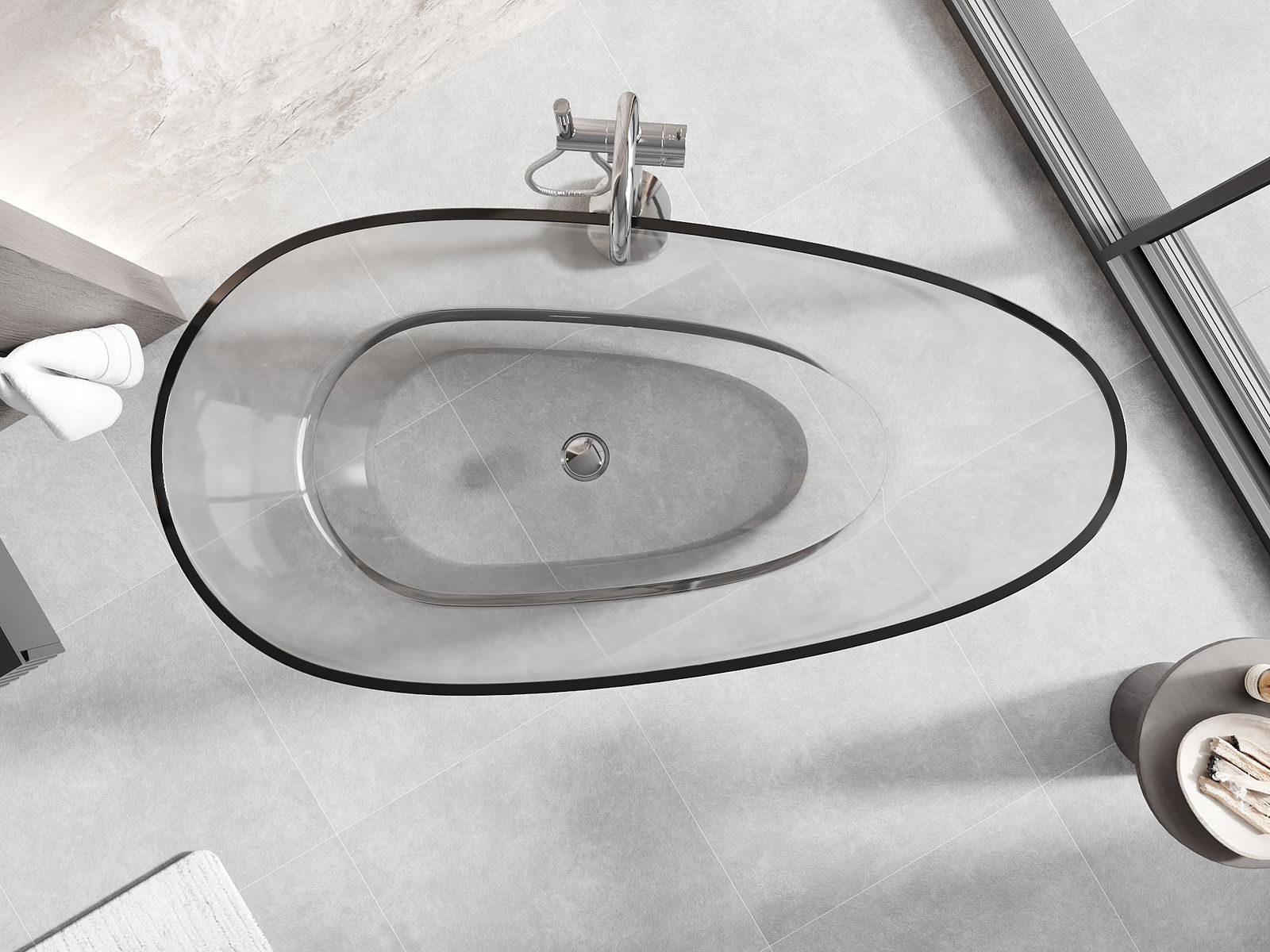 È un materiale moderno che combina un aspetto elegante con un'elevata durata. È resistente ai danni meccanici, facile da pulire e piacevole al tatto. La forma trasparente e il bordo sottile della vasca le conferiscono leggerezza e un carattere unico, creando un effetto accattivante nell'arredo bagno.