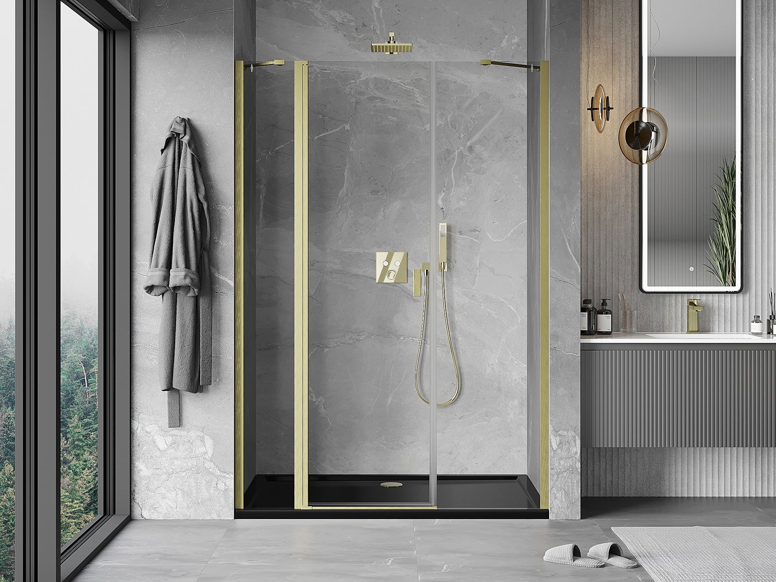 Mexen Mist porta doccia a battente 140 cm, trasparente, oro spazzolato - 8A4-140-001-55-00