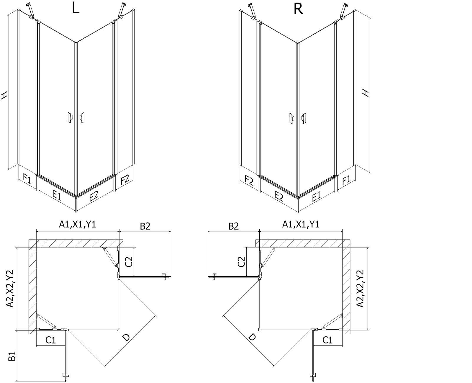Le porte a battente offrono la massima libertà durante l'uso. Dispongono di robusti cardini realizzati in materiale durevole, che non creano difficoltà nella pulizia e consentono un facile accesso all'interno della cabina.
