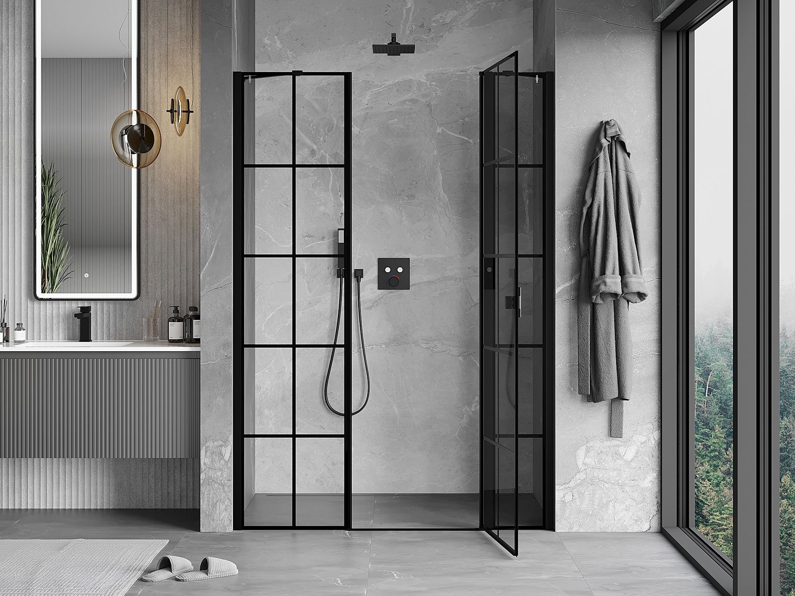 Mexen Mist porta doccia a battente destra 125 cm, griglia nera, nero - 8A4-125-001-70-77-P