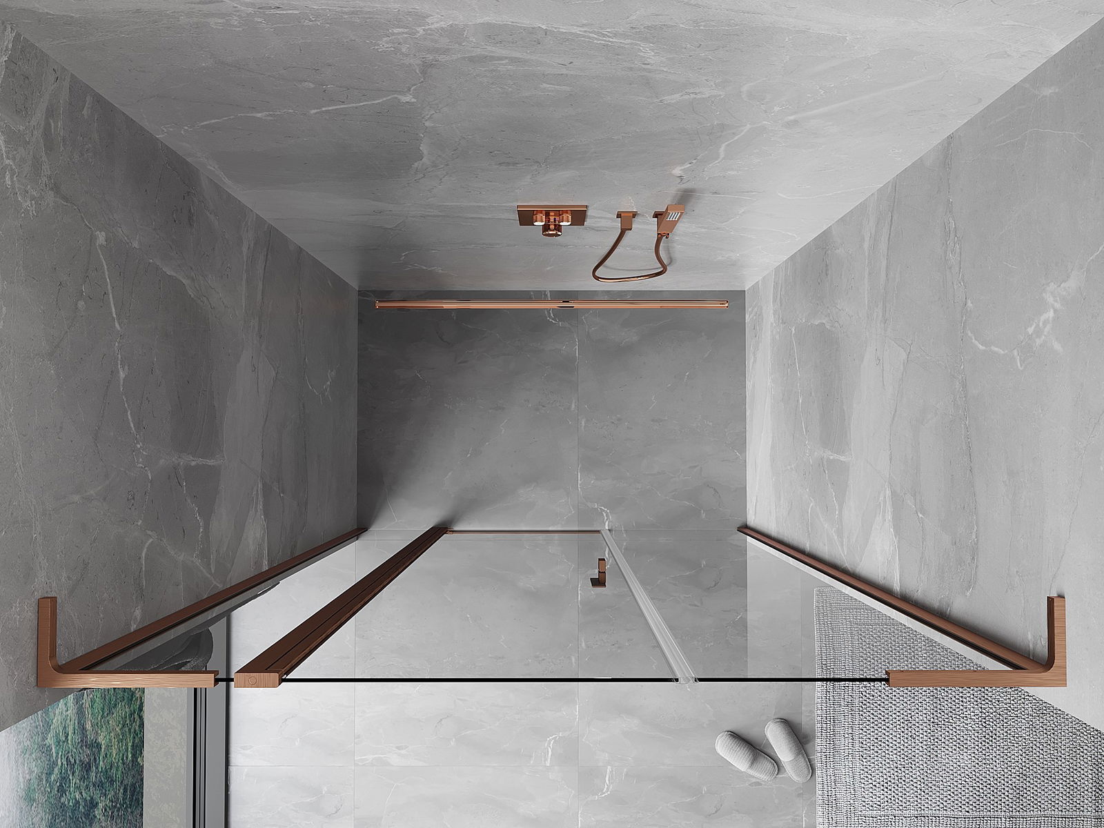 Mexen Mist L porta doccia battente 140 cm, trasparente, rame spazzolato - 8A4L-140-001-65-00