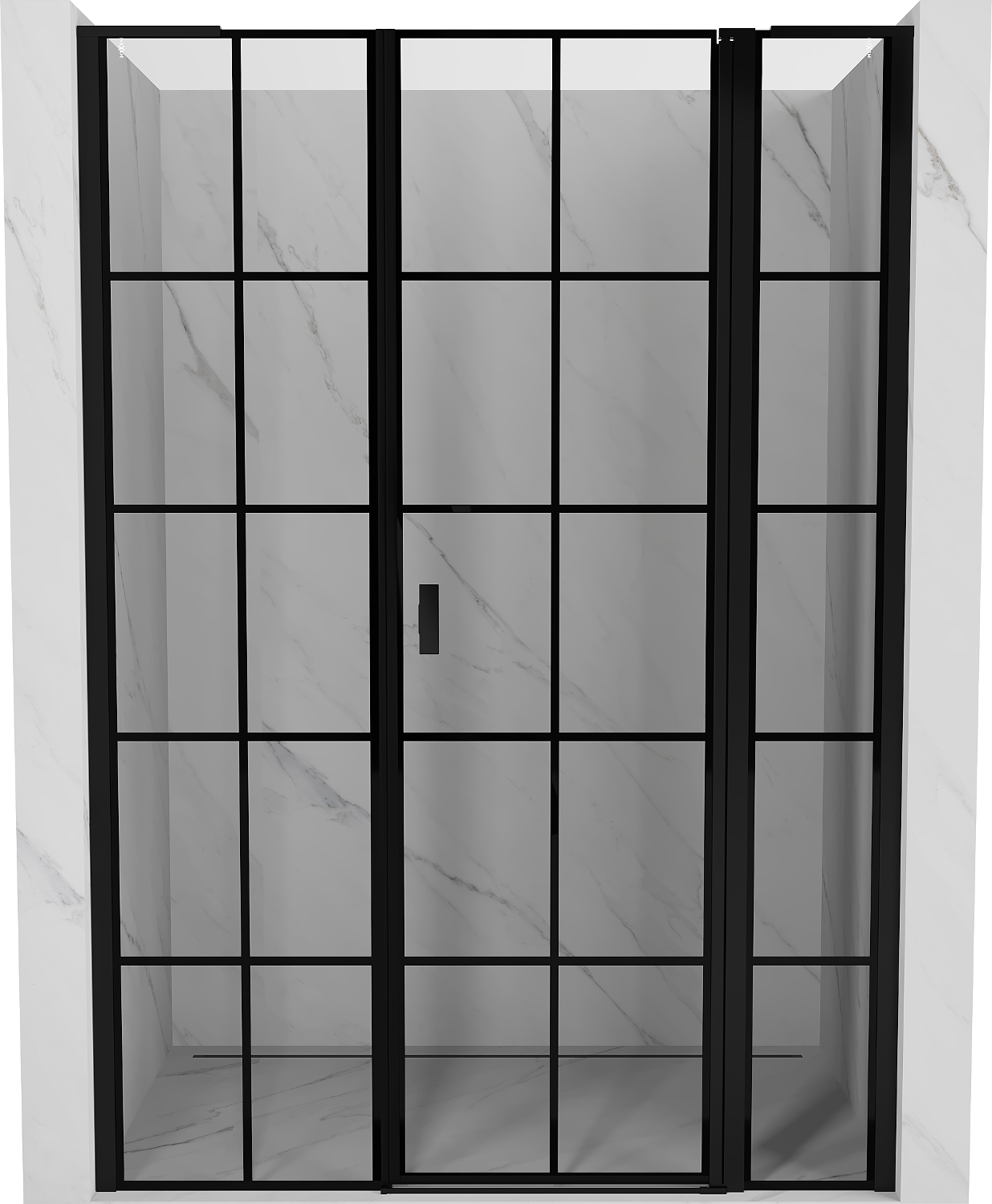 Mexen Mist L porta doccia battente destra 135 cm, griglia nera, nero - 8A4L-135-001-70-77-P