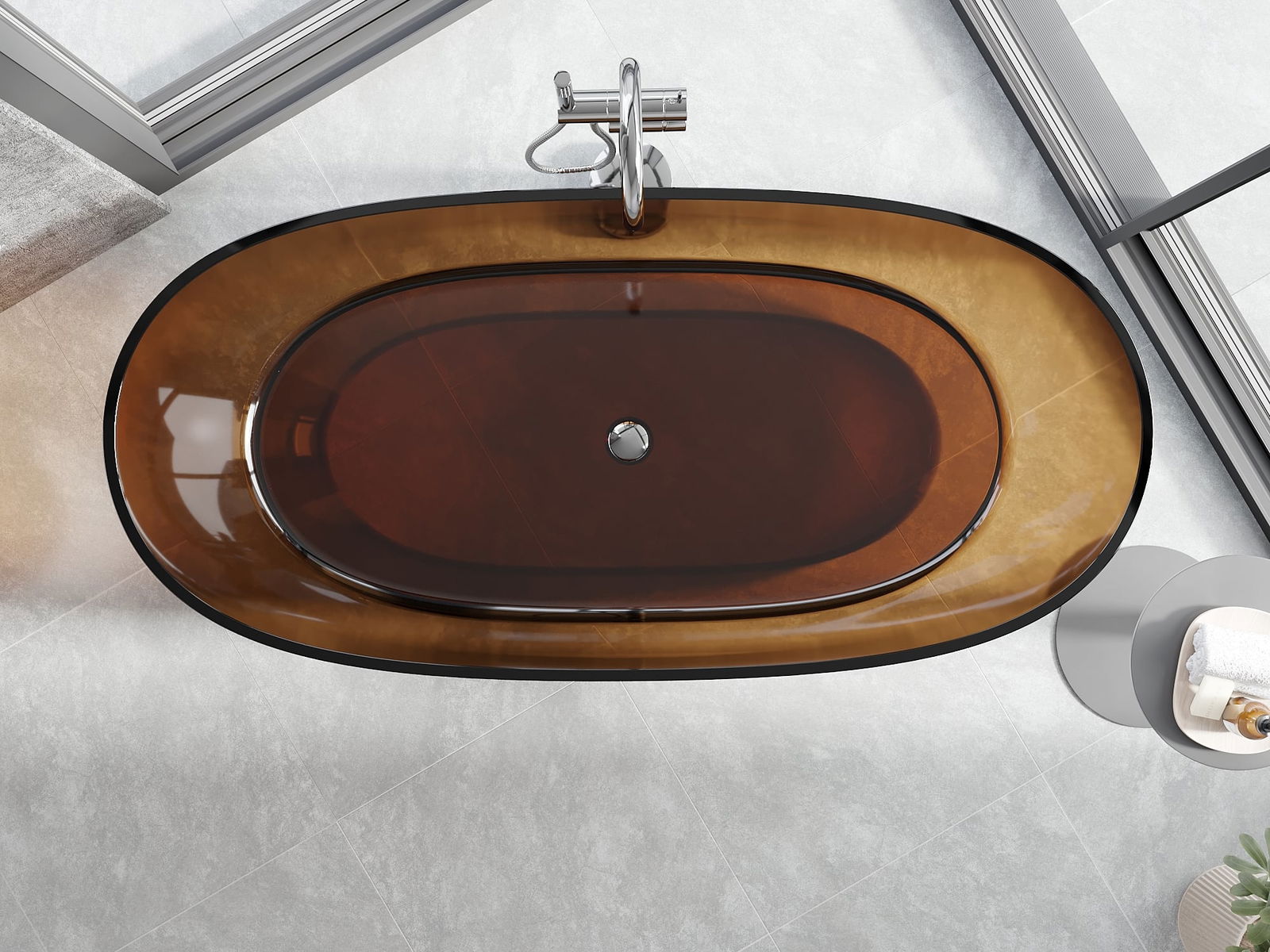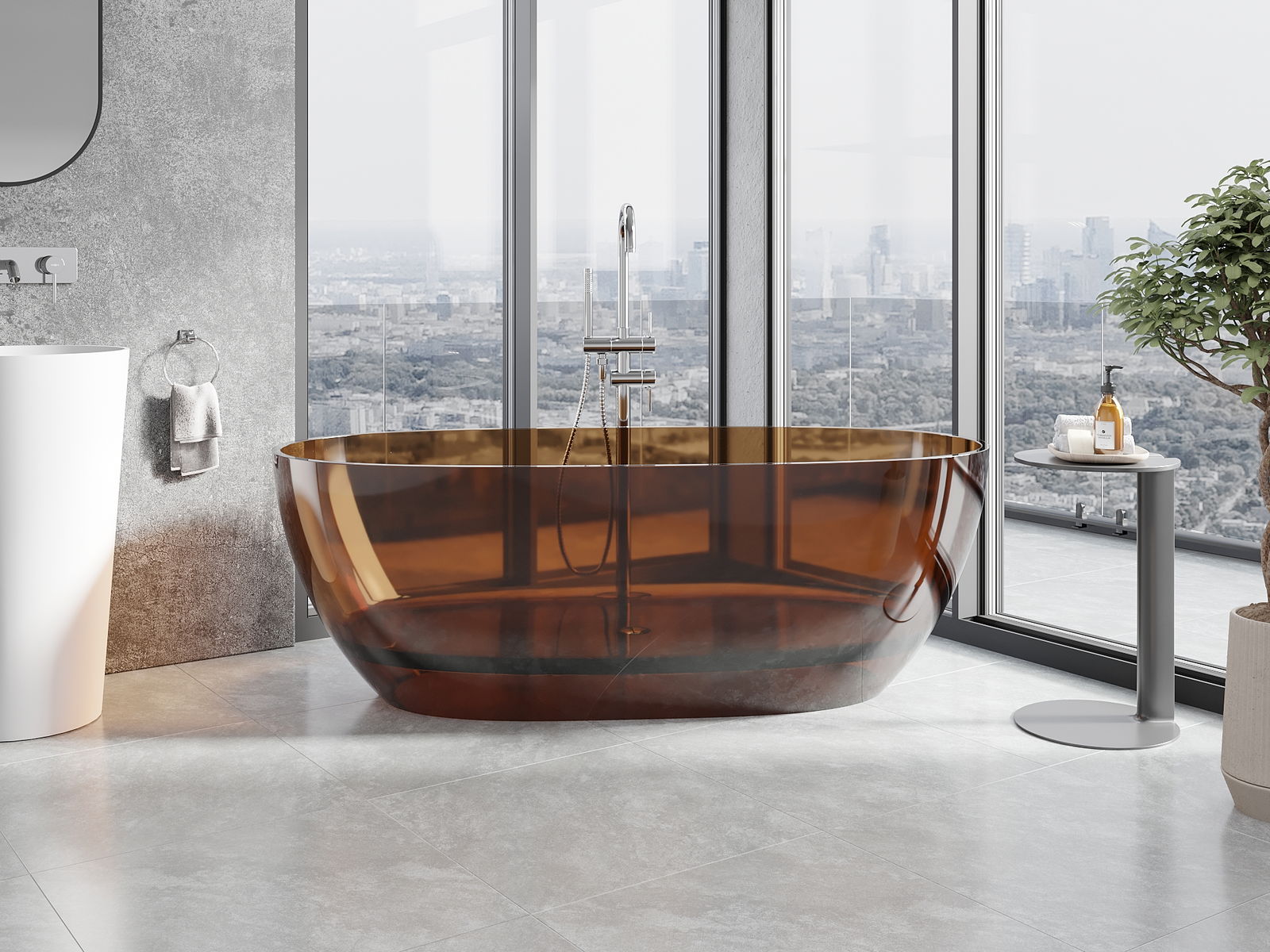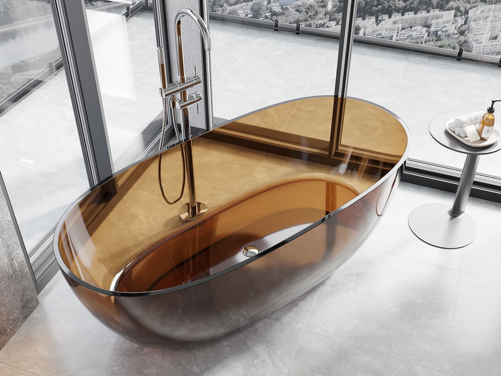È un materiale moderno che combina un aspetto elegante con un'elevata durata. È resistente ai danni meccanici, facile da pulire e piacevole al tatto. La forma trasparente e il bordo sottile della vasca le conferiscono leggerezza e un carattere unico, creando un effetto accattivante nell'arredo bagno.