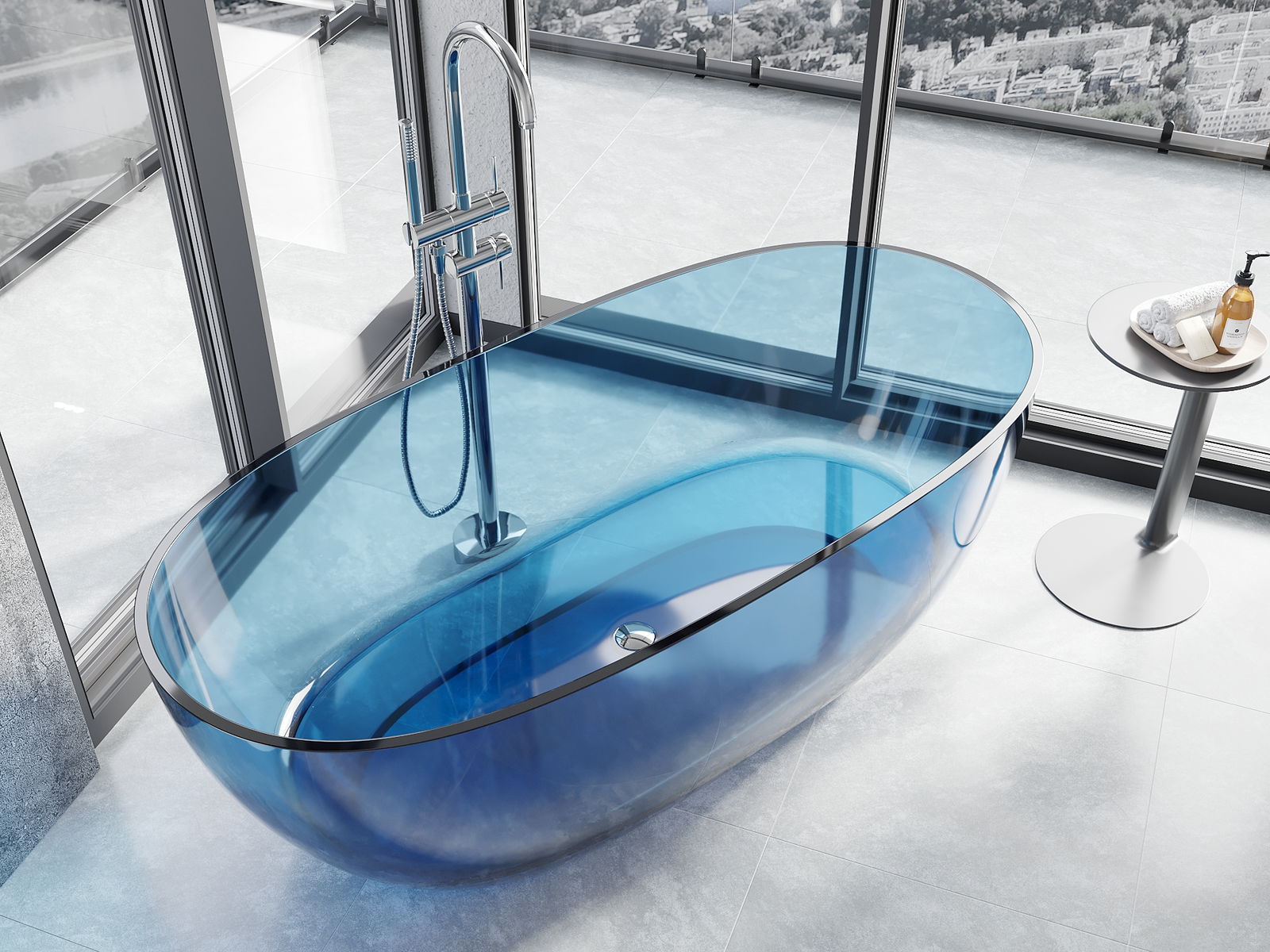 È un materiale moderno che combina un aspetto elegante con un'elevata durata. È resistente ai danni meccanici, facile da pulire e piacevole al tatto. La forma trasparente e il bordo sottile della vasca le conferiscono leggerezza e un carattere unico, creando un effetto accattivante nell'arredo bagno.