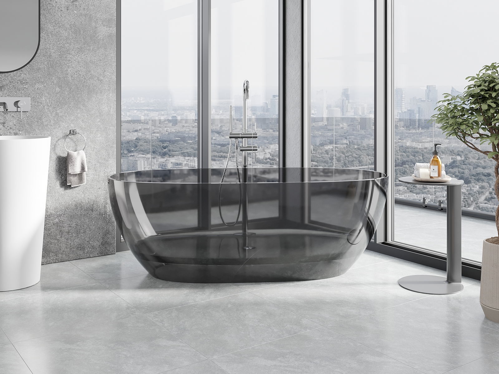 È un materiale moderno che combina un aspetto elegante con un'elevata durata. È resistente ai danni meccanici, facile da pulire e piacevole al tatto. La forma trasparente e il bordo sottile della vasca le conferiscono leggerezza e un carattere unico, creando un effetto accattivante nell'arredo bagno.