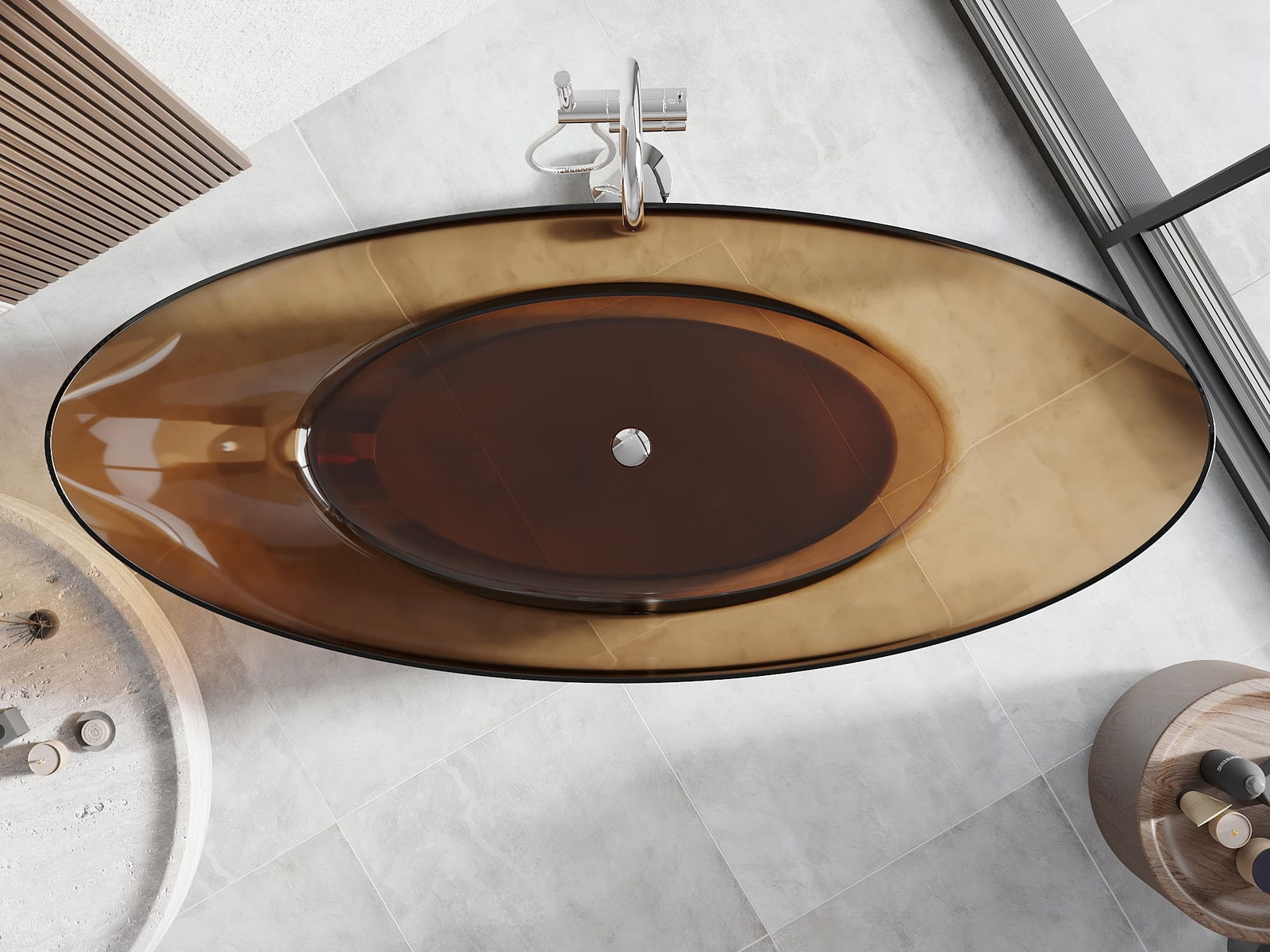 È un materiale moderno che combina un aspetto elegante con un'elevata durata. È resistente ai danni meccanici, facile da pulire e piacevole al tatto. La forma trasparente e il bordo sottile della vasca le conferiscono leggerezza e un carattere unico, creando un effetto accattivante nell'arredo bagno.