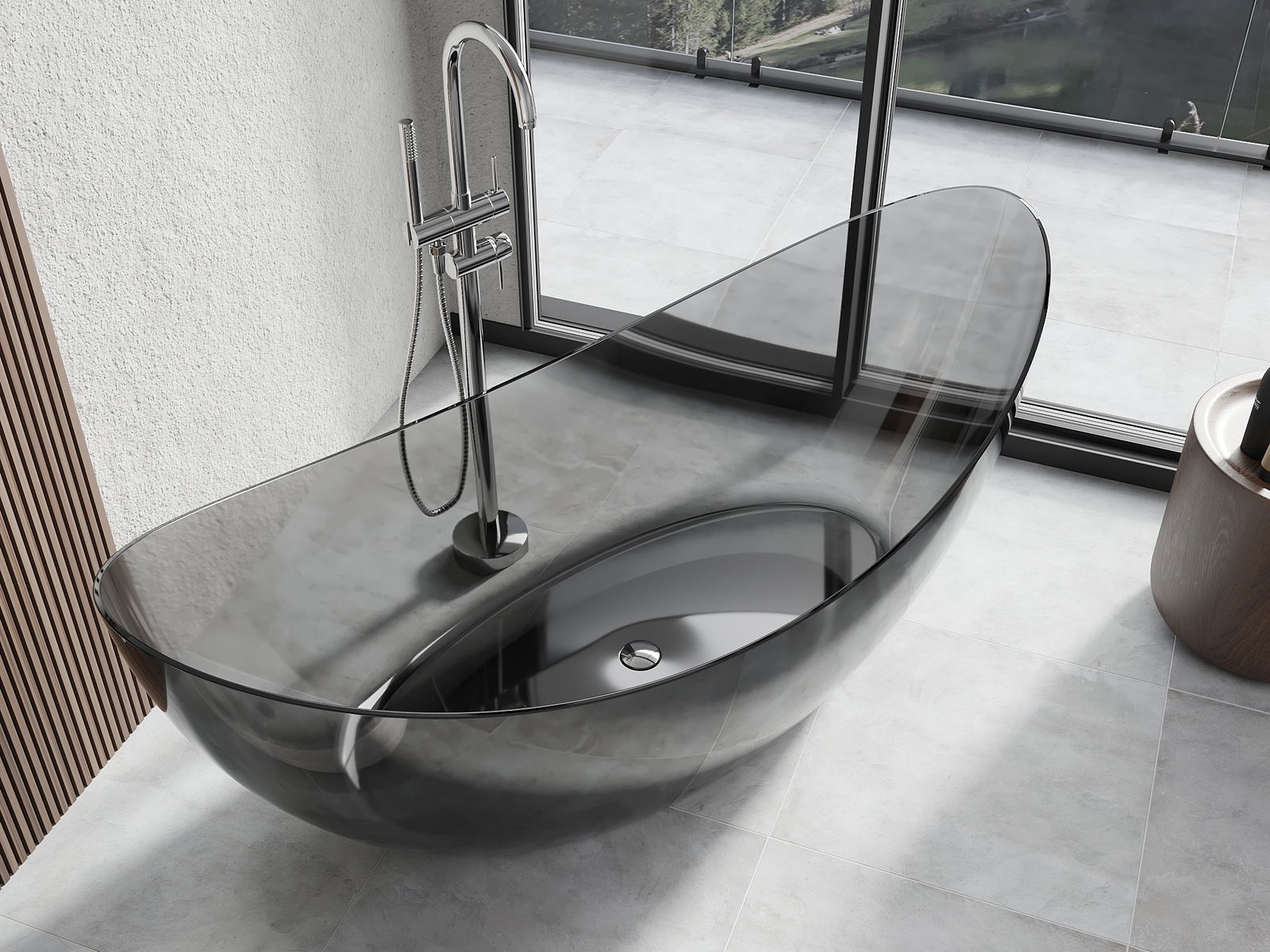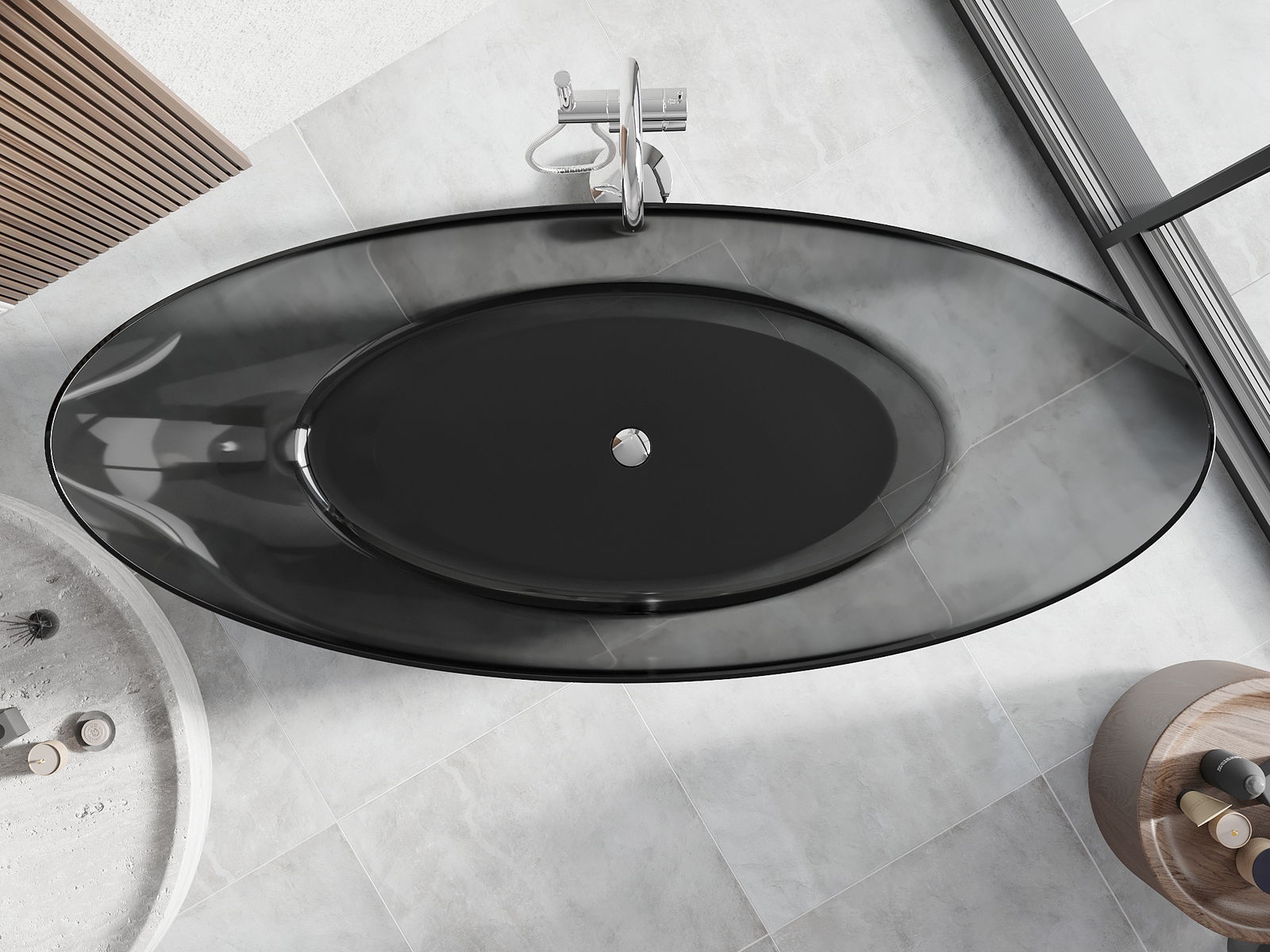 È un materiale moderno che combina un aspetto elegante con un'elevata durata. È resistente ai danni meccanici, facile da pulire e piacevole al tatto. La forma trasparente e il bordo sottile della vasca le conferiscono leggerezza e un carattere unico, creando un effetto accattivante nell'arredo bagno.