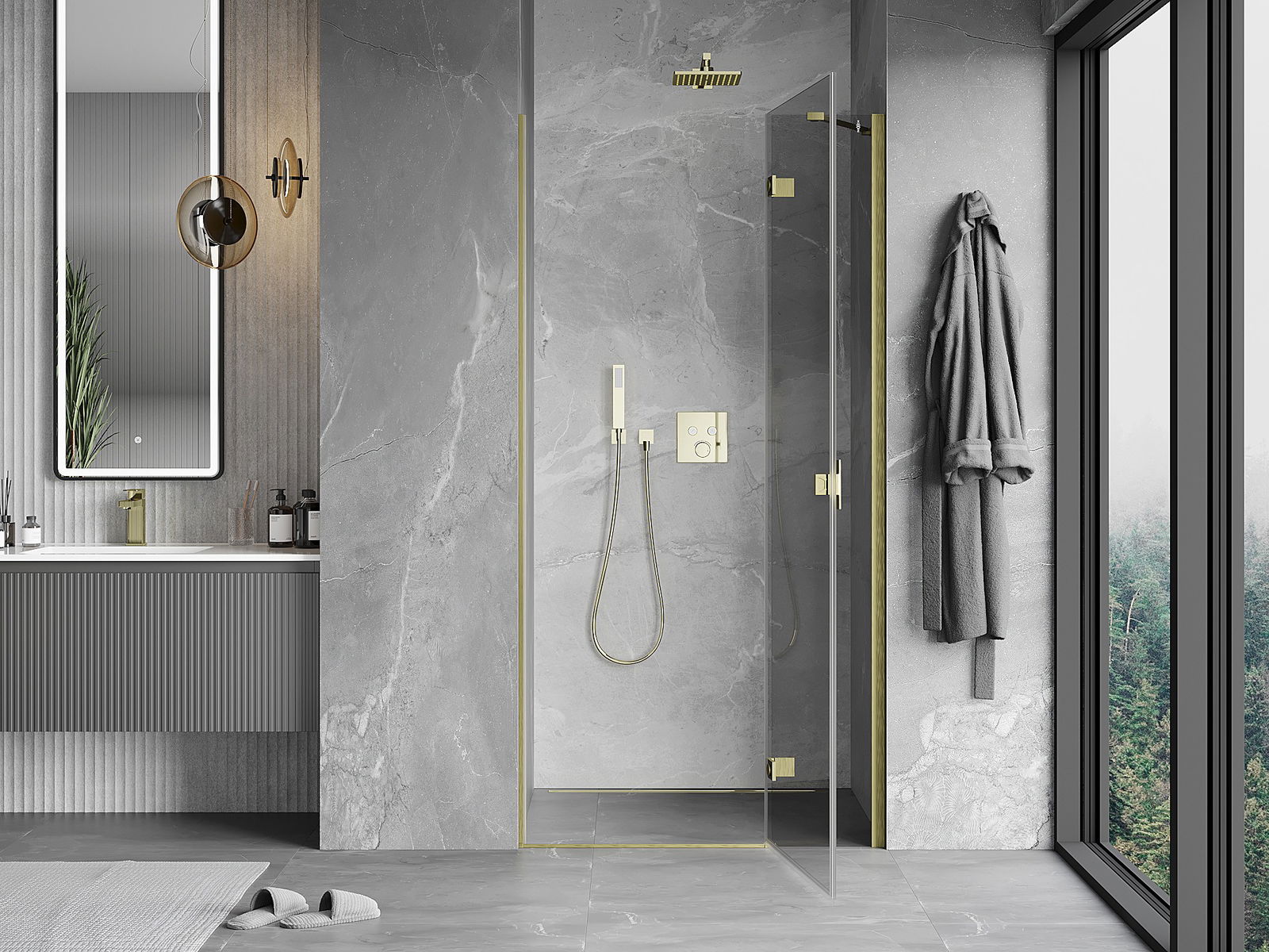 Il prodotto, a seconda delle esigenze, può essere installato sia sul piatto doccia che direttamente sul pavimento. Il metodo di installazione universale consente di adattare il prodotto a diversi tipi di bagni e configurazioni di spazio.