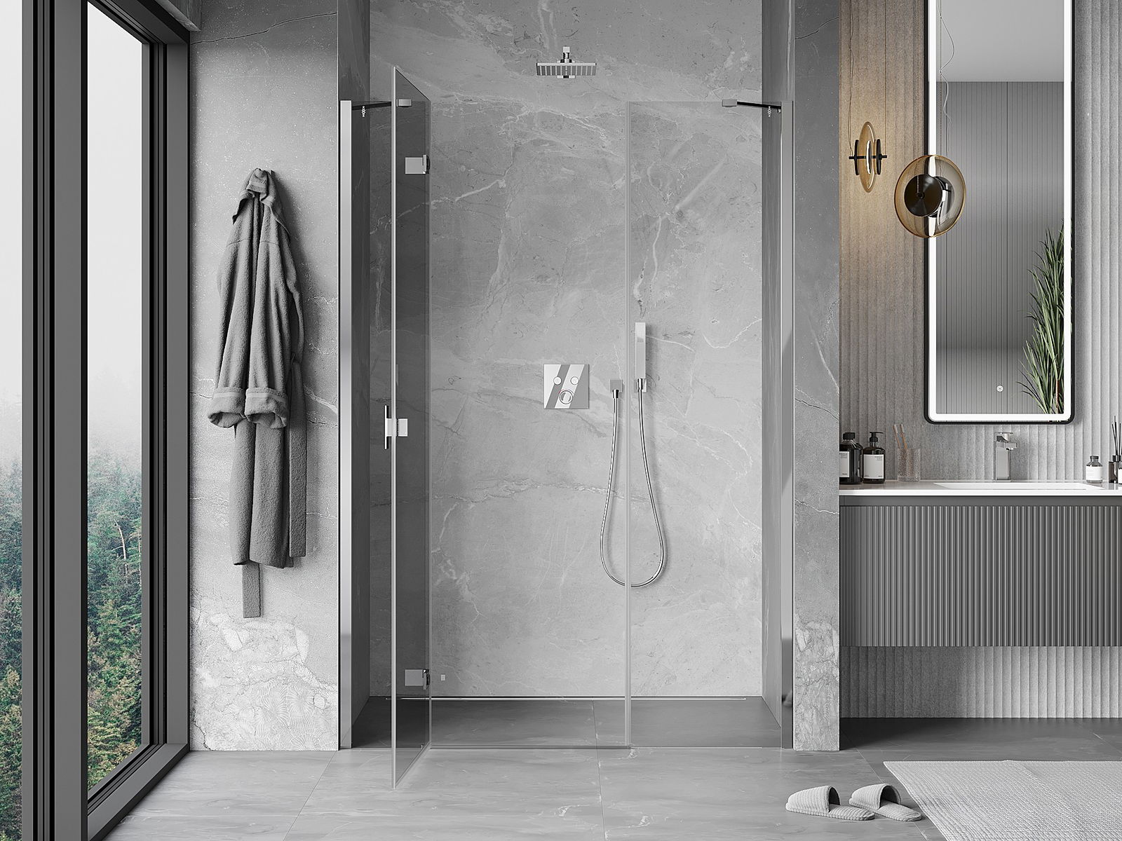 Le porte a battente offrono la massima libertà durante l'uso. Dispongono di robusti cardini realizzati in materiale durevole, che non creano difficoltà nella pulizia e consentono un facile accesso all'interno della cabina.
