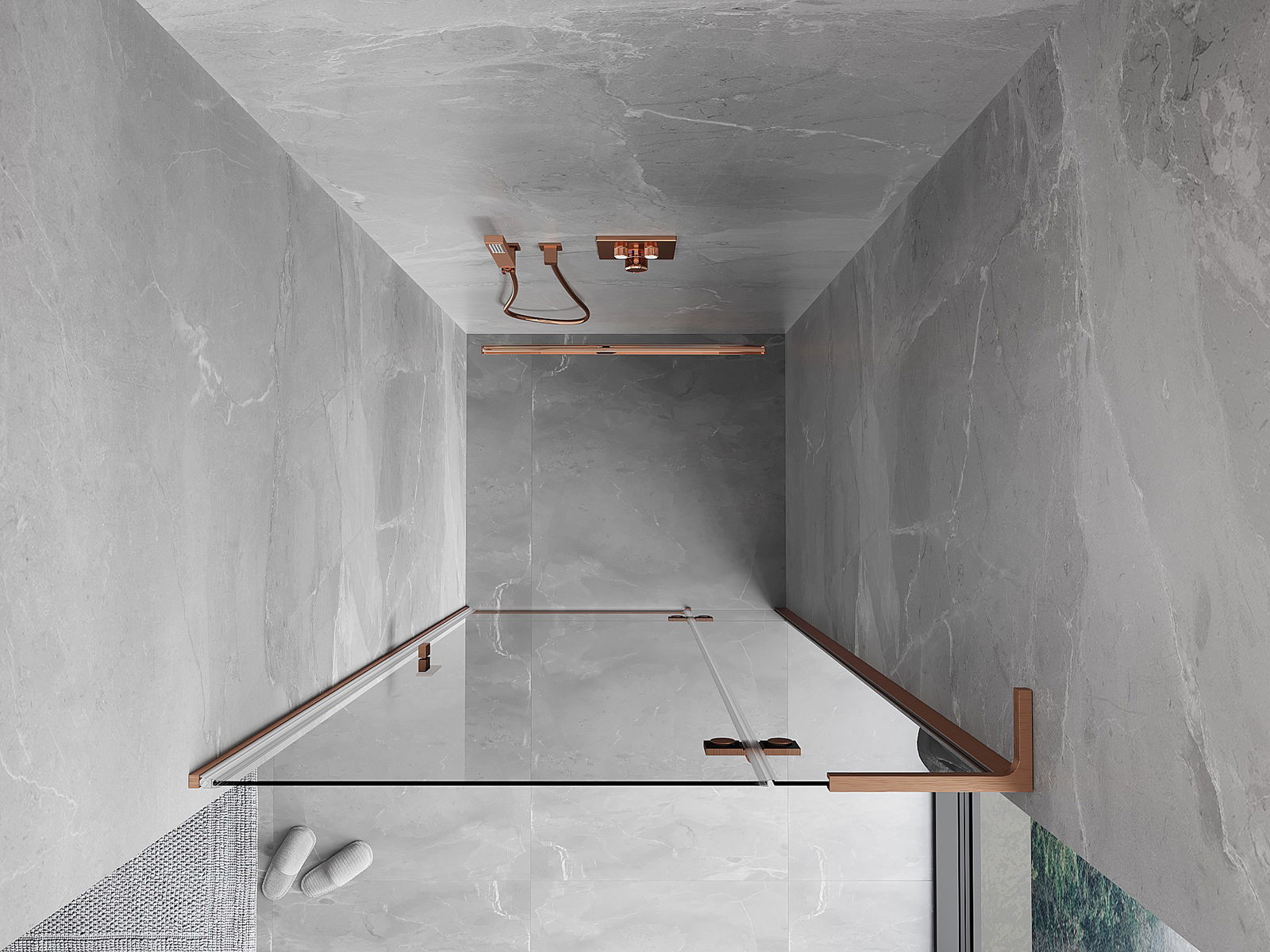 Il prodotto, a seconda delle esigenze, può essere installato sia sul piatto doccia che direttamente sul pavimento. Il metodo di installazione universale consente di adattare il prodotto a diversi tipi di bagni e configurazioni di spazio.