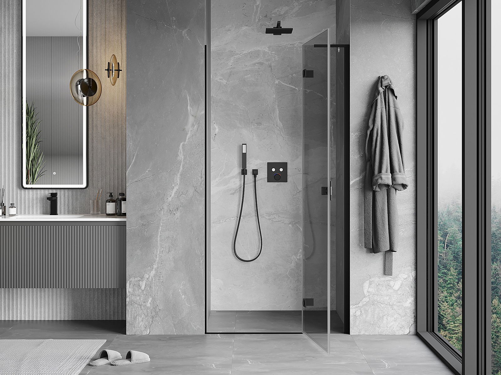 Il prodotto, a seconda delle esigenze, può essere installato sia sul piatto doccia che direttamente sul pavimento. Il metodo di installazione universale consente di adattare il prodotto a diversi tipi di bagni e configurazioni di spazio.
