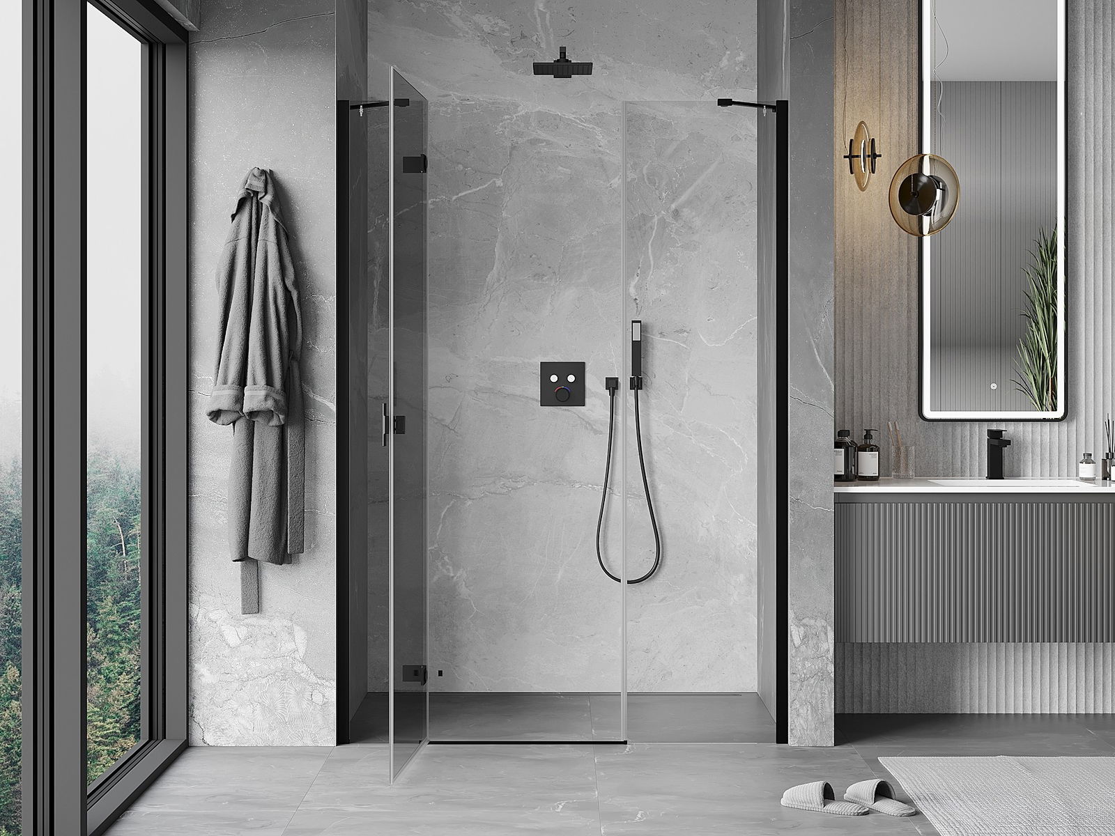 Il prodotto, a seconda delle esigenze, può essere installato sia sul piatto doccia che direttamente sul pavimento. Il metodo di installazione universale consente di adattare il prodotto a diversi tipi di bagni e configurazioni di spazio.