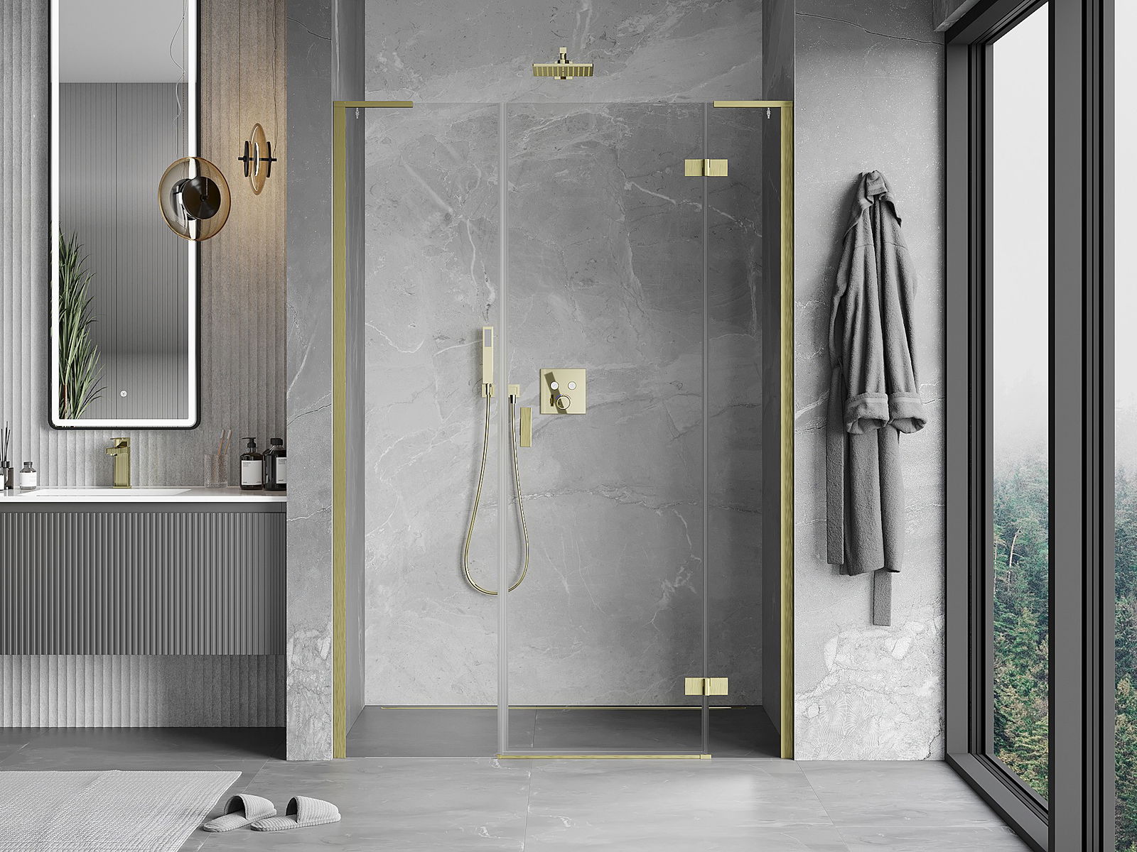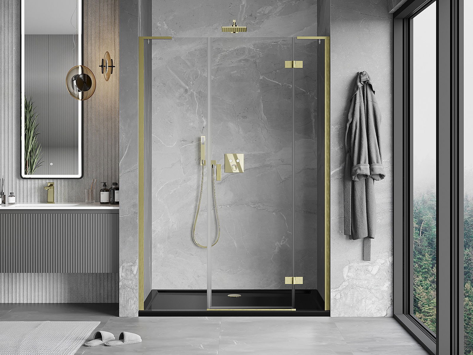 Il prodotto, a seconda delle esigenze, può essere installato sia sul piatto doccia che direttamente sul pavimento. Il metodo di installazione universale consente di adattare il prodotto a diversi tipi di bagni e configurazioni di spazio.