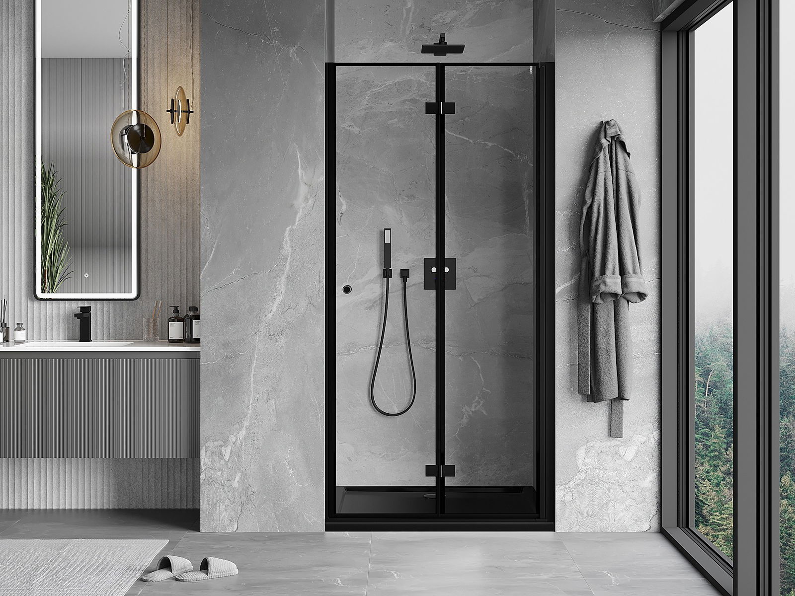 La possibilità di piegare le porte, sia verso l'esterno che verso l'interno, consente di ottenere più spazio quando la doccia non viene utilizzata. È una soluzione ideale per i bagni più piccoli, che sfrutta al massimo lo spazio disponibile.