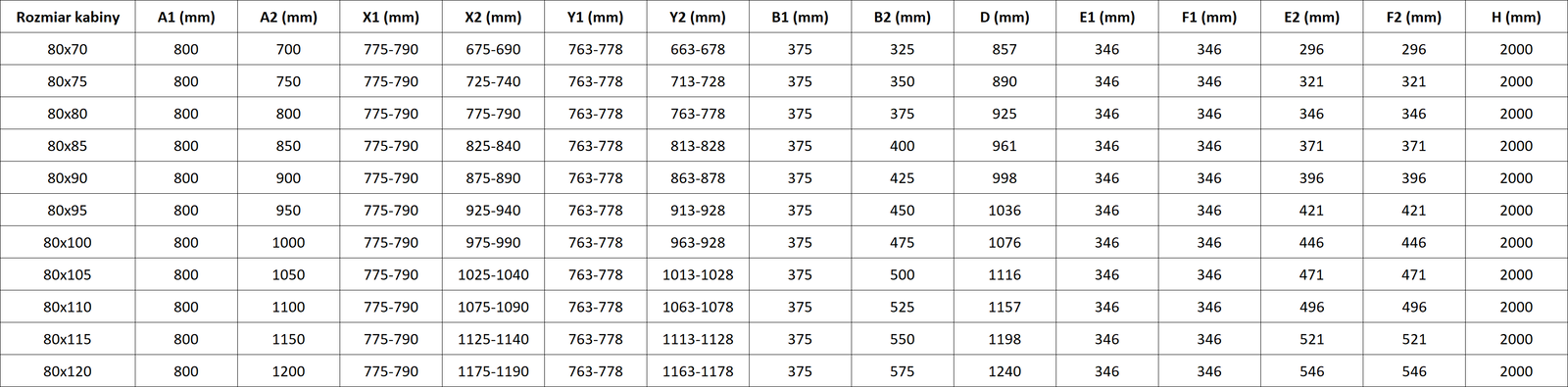 Dimensioni: 80x80 cm (porta sinistra 80 cm, porta destra 80 cm)