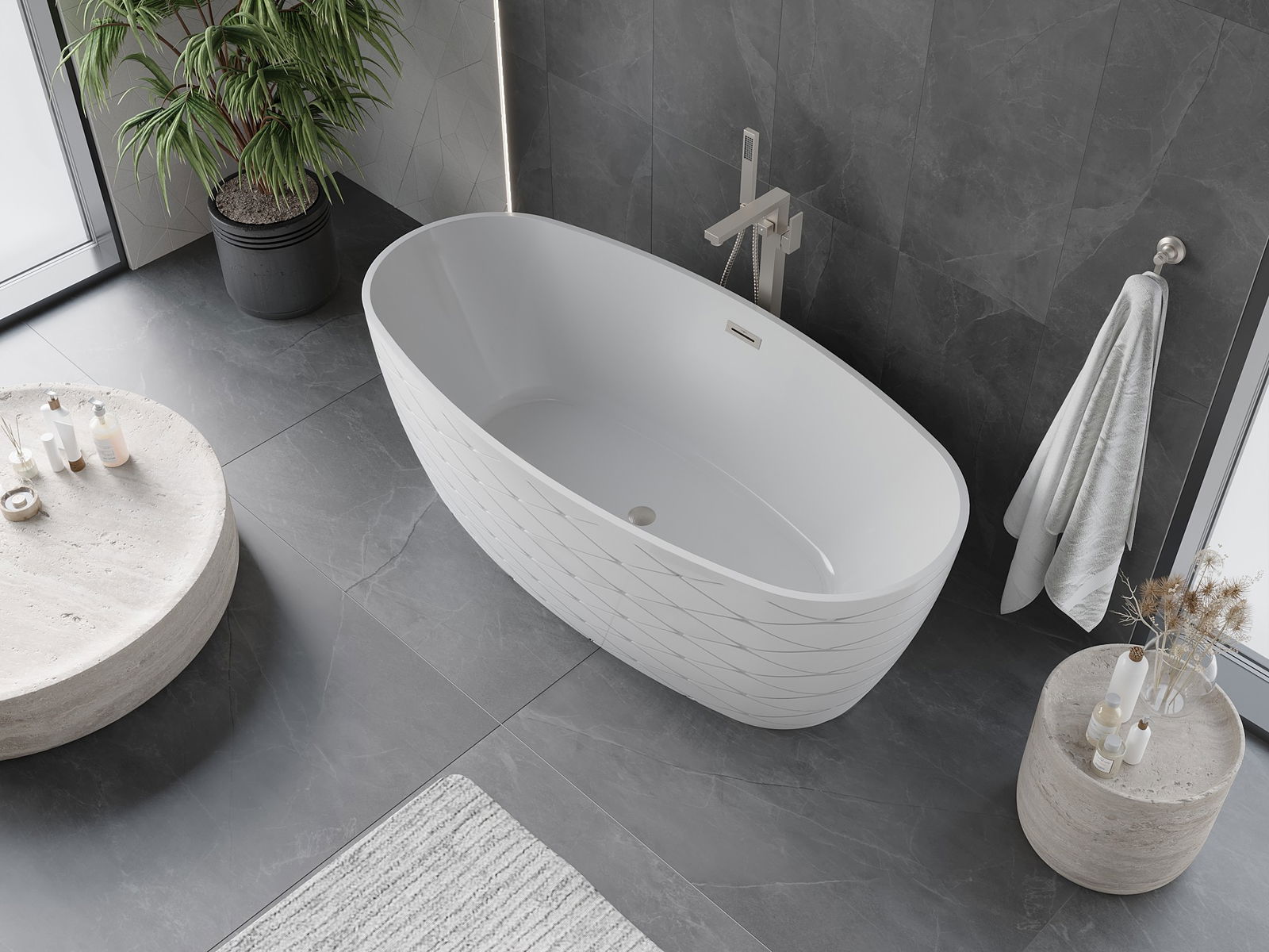 È un materiale moderno che combina un aspetto elegante con un'elevata durata. È resistente ai danni meccanici, facile da pulire e piacevole al tatto. La forma trasparente e il bordo sottile della vasca le conferiscono leggerezza e un carattere unico, creando un effetto accattivante nell'arredo bagno.