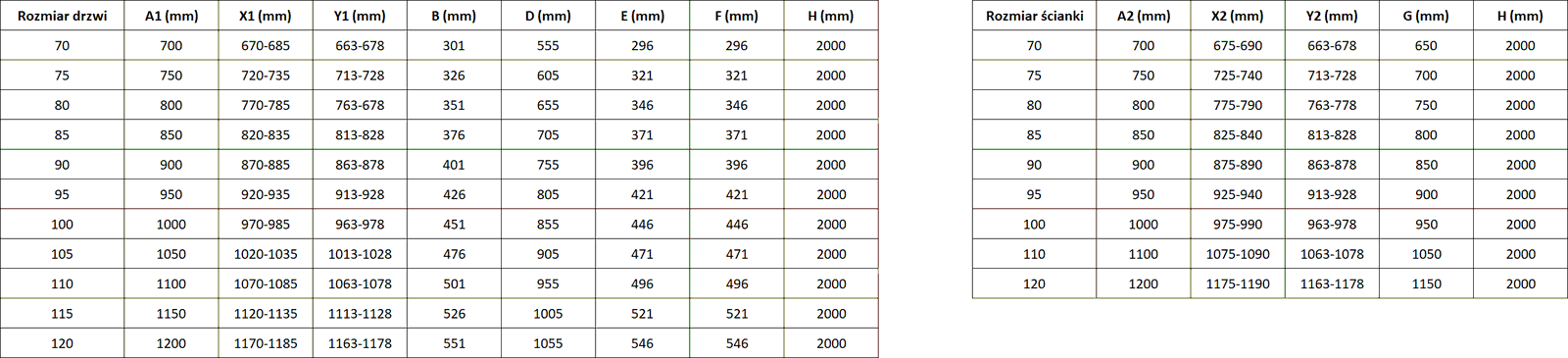 Dimensione: 85x110 cm (porta destra 85 cm, parete 110 cm)