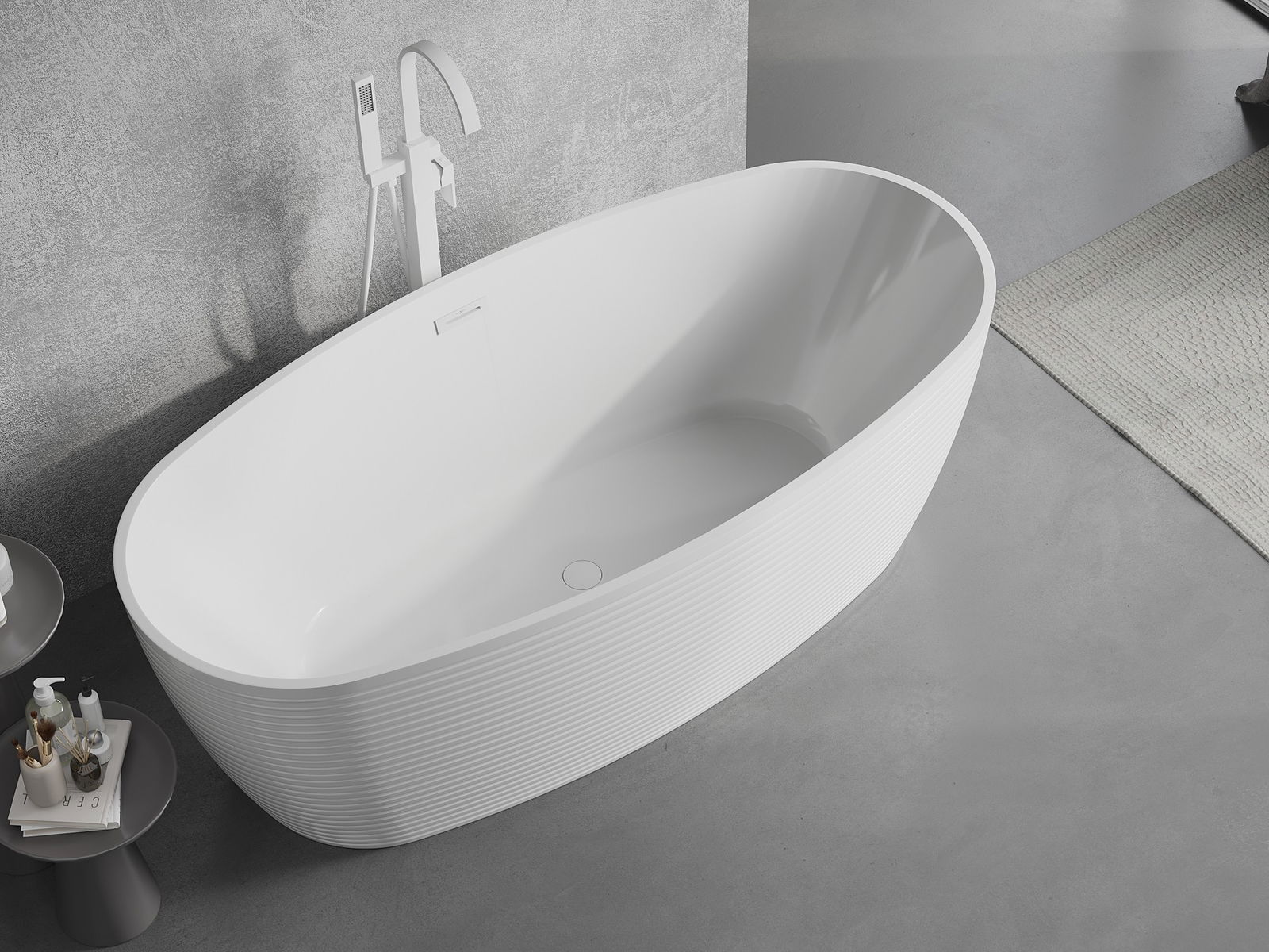È un materiale moderno che combina un aspetto elegante con un'elevata durata. È resistente ai danni meccanici, facile da pulire e piacevole al tatto. La forma trasparente e il bordo sottile della vasca le conferiscono leggerezza e un carattere unico, creando un effetto accattivante nell'arredo bagno.
