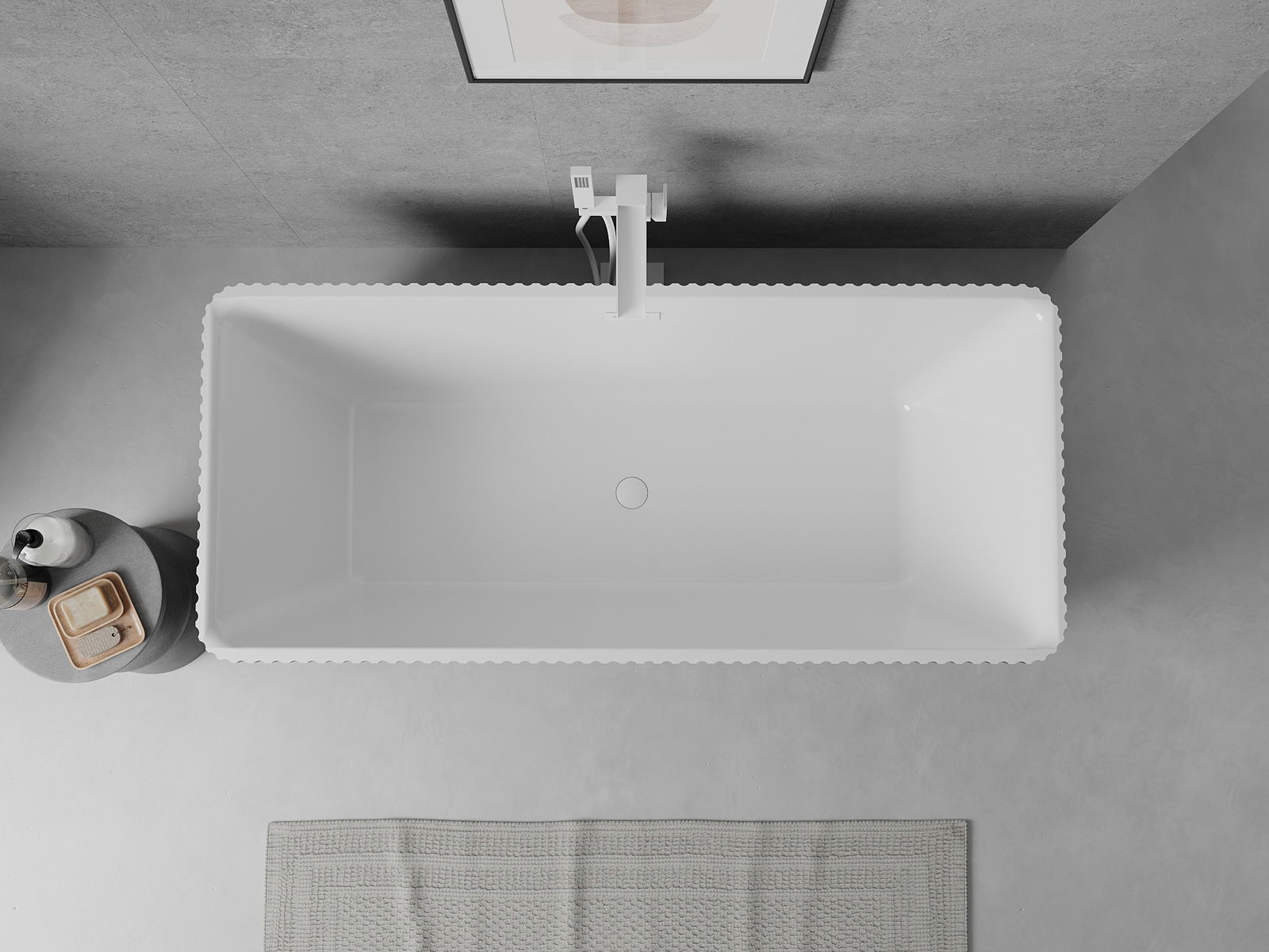 È un materiale moderno che combina un aspetto elegante con un'elevata durata. È resistente ai danni meccanici, facile da pulire e piacevole al tatto. La forma trasparente e il bordo sottile della vasca le conferiscono leggerezza e un carattere unico, creando un effetto accattivante nell'arredo bagno.