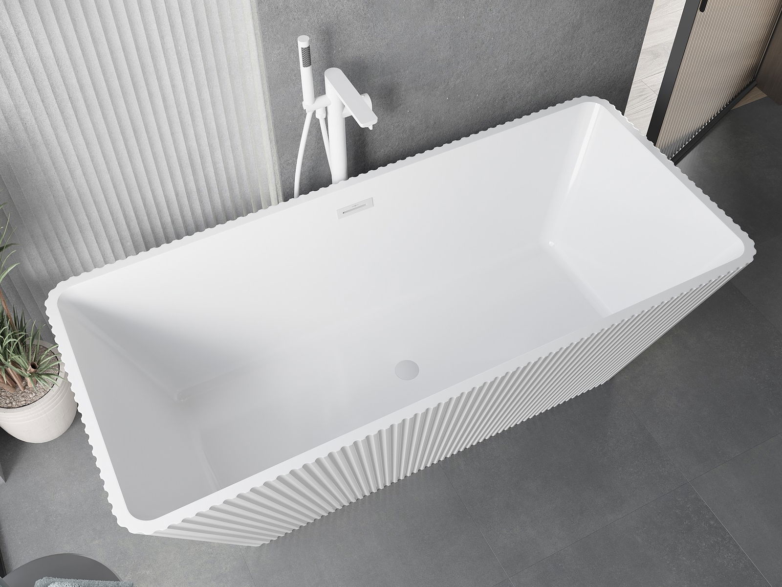 È un materiale moderno che combina un aspetto elegante con un'elevata durata. È resistente ai danni meccanici, facile da pulire e piacevole al tatto. La forma trasparente e il bordo sottile della vasca le conferiscono leggerezza e un carattere unico, creando un effetto accattivante nell'arredo bagno.