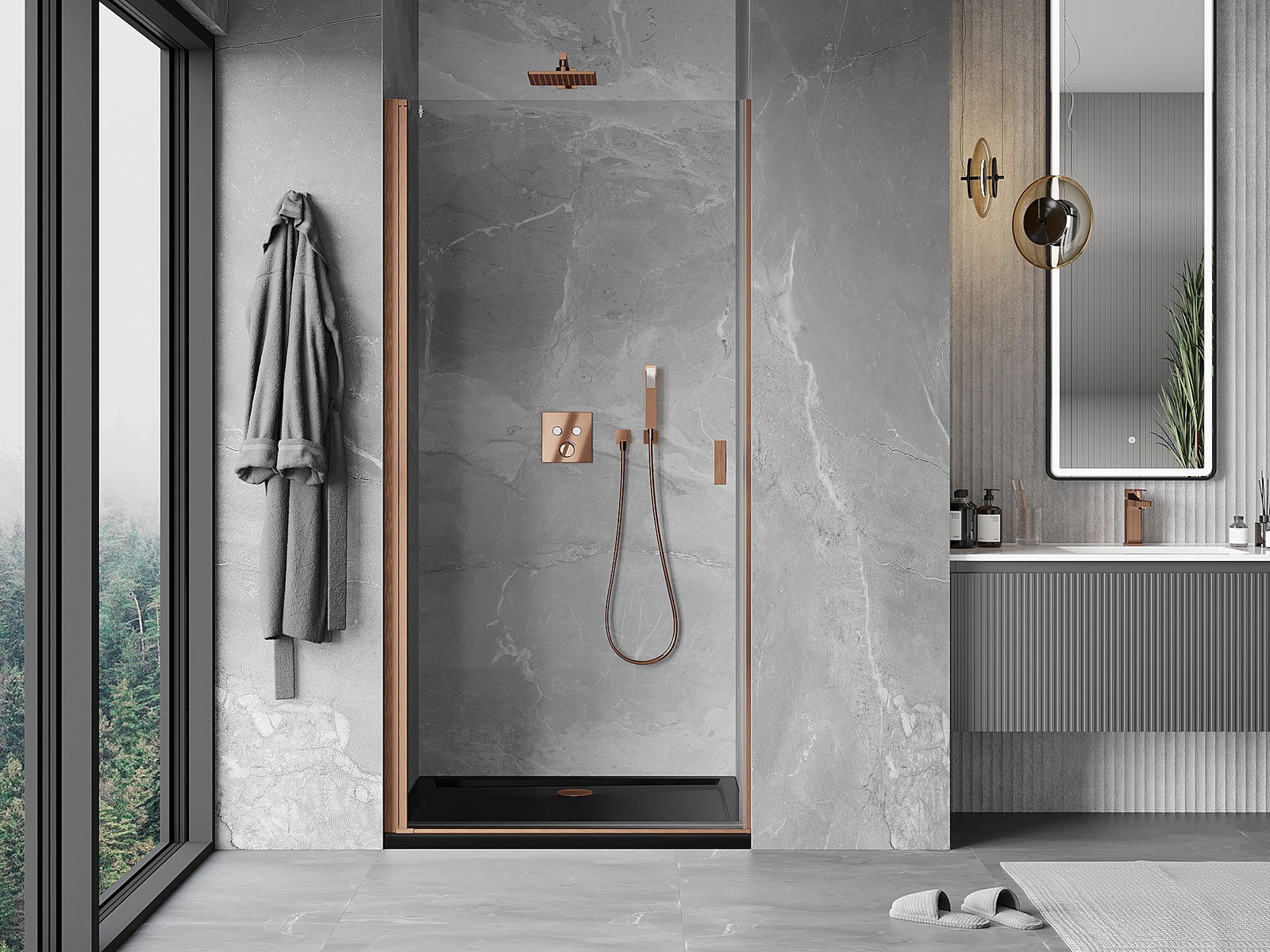 L'impugnatura pratica e comoda è realizzata in metallo durevole e resistente. La forma alla moda combinata con una finitura abbinata al colore dei profili conferisce all'insieme un aspetto moderno e elegante, enfatizzando l'estetica di ogni bagno.