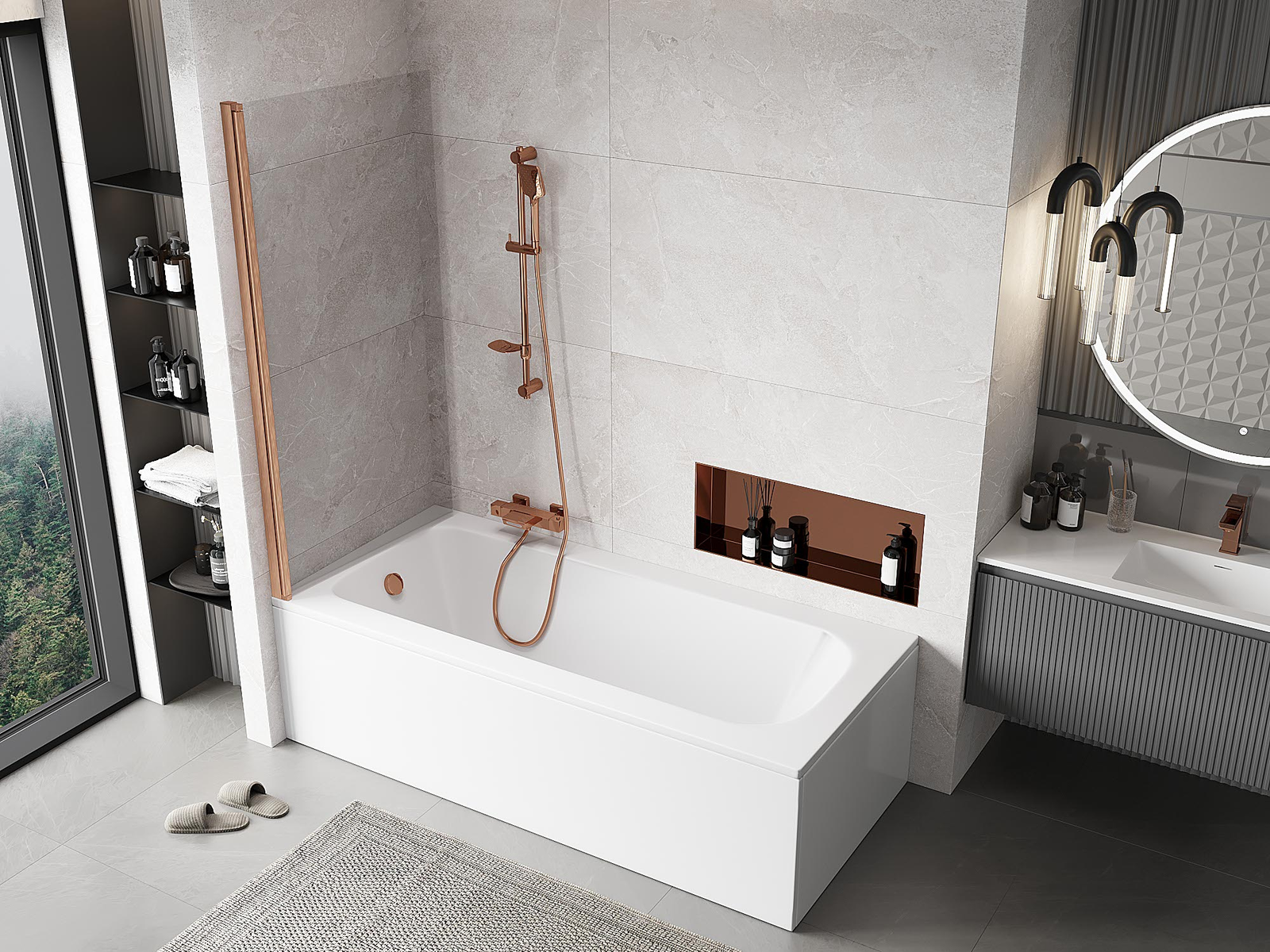 Mexen Mist paravento per vasca 1 anta 90 x 150 cm, trasparente, rame spazzolato - 8A9-090-001-65-00