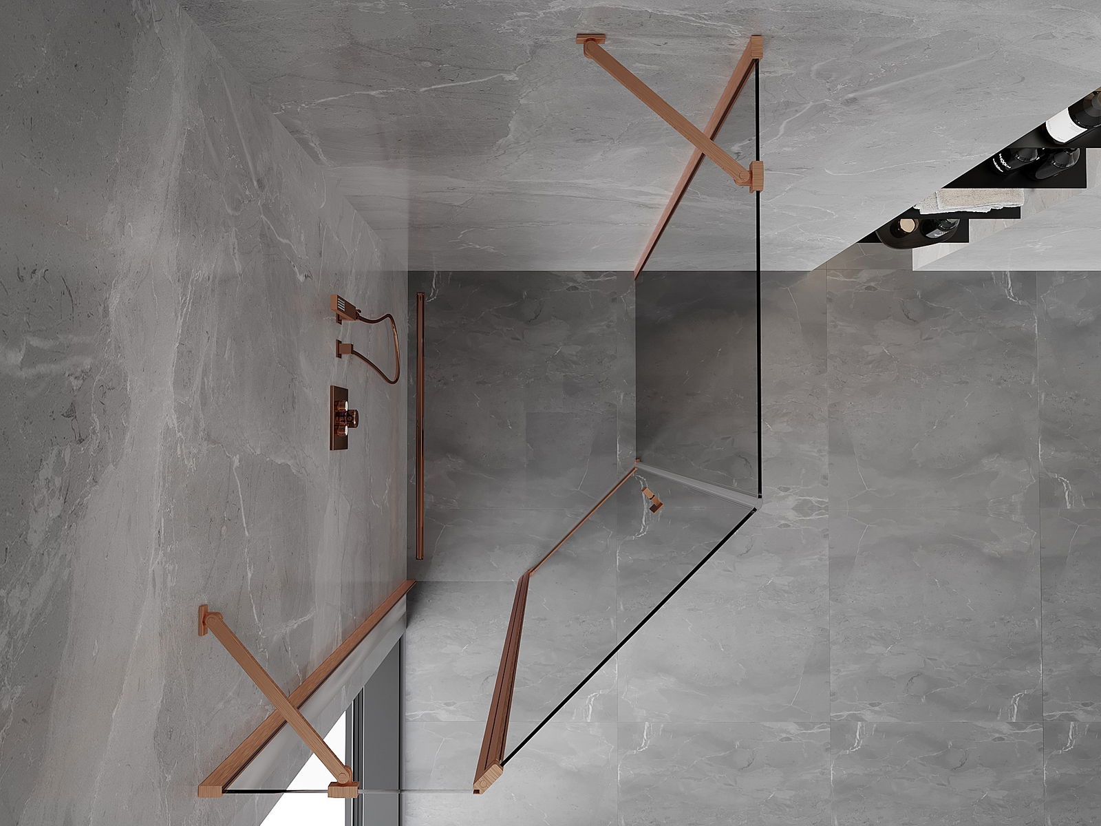 Mexen Mist cabina doccia pentagonale asimmetrica a battente 80 x 90 cm, trasparente, rame spazzolato - 8A8-080-090-65-00