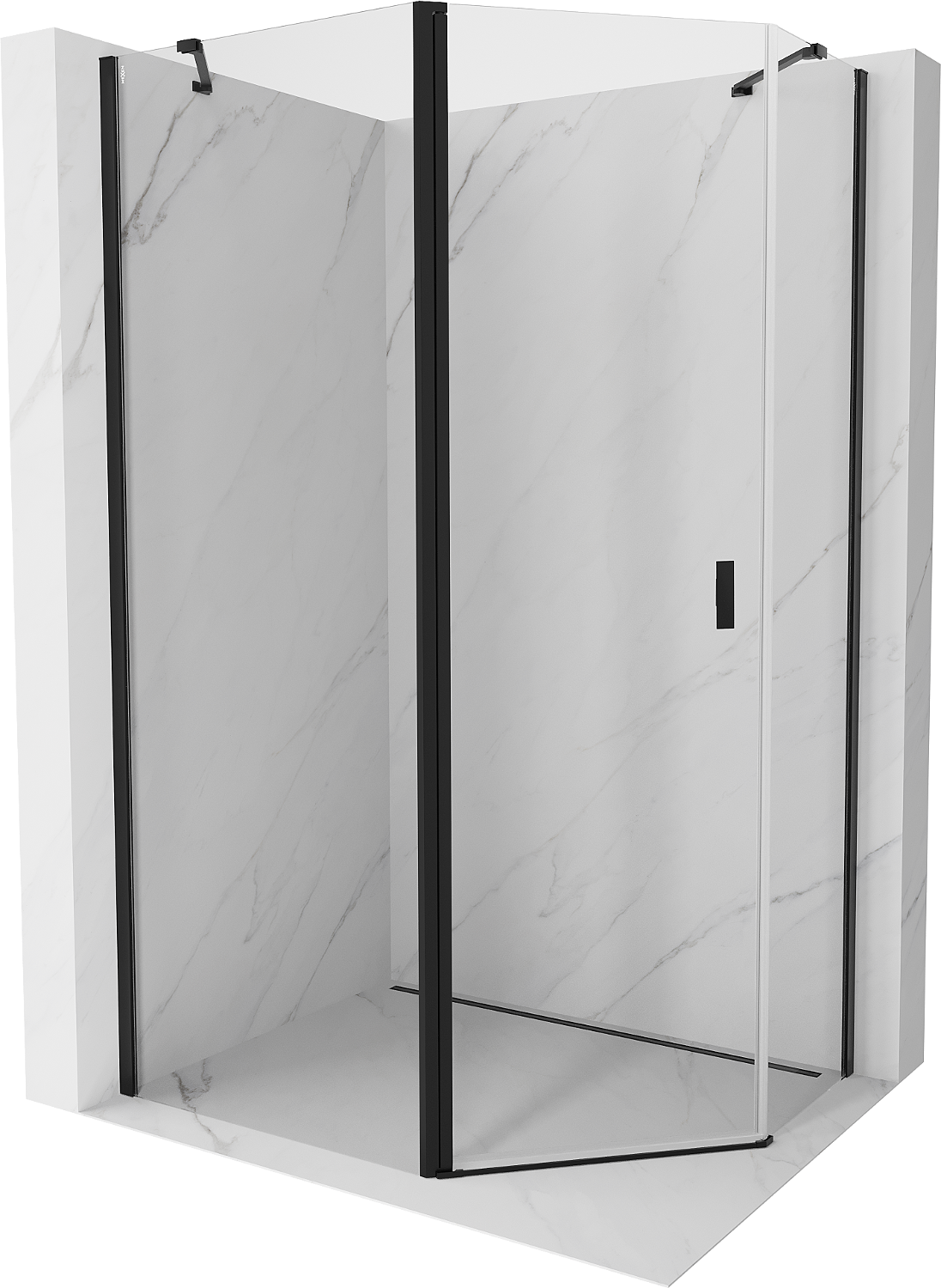 Mexen Mist cabina doccia pentagonale asimmetrica a battente 100 x 80 cm, trasparente, nero - 8A8-100-080-70-00