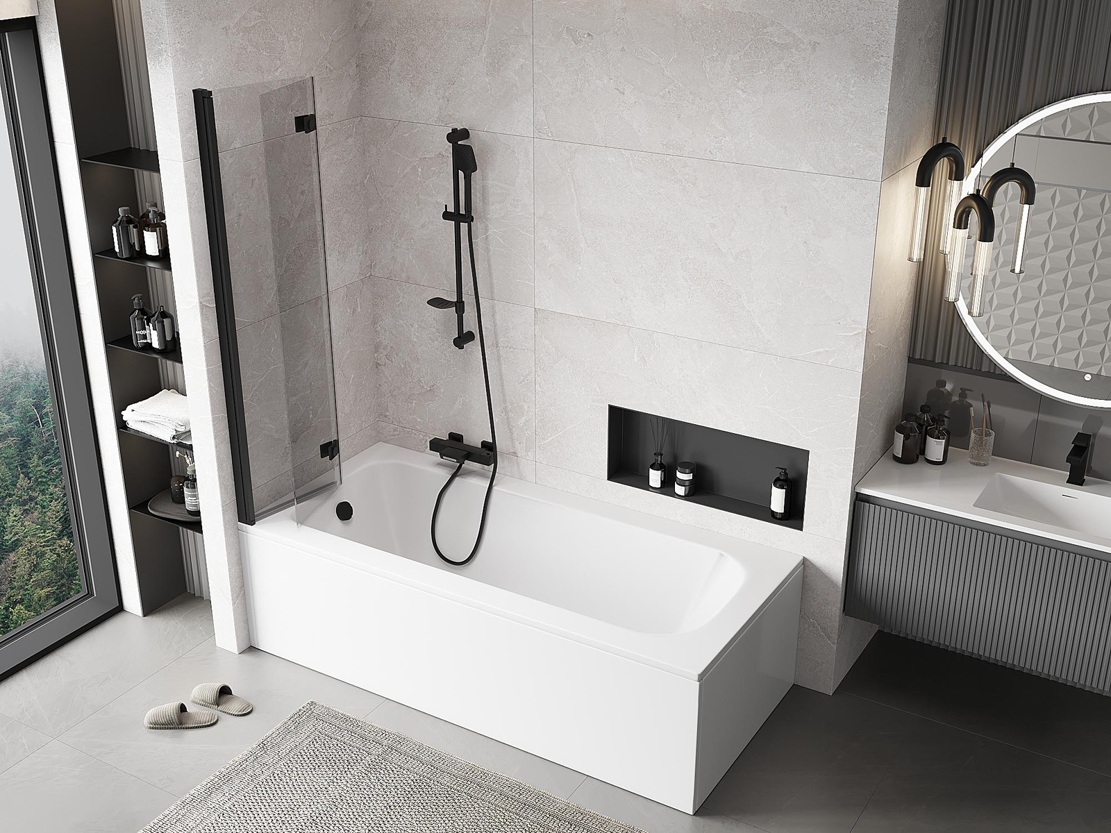 Protezione efficace contro la fuoriuscita d'acqua durante il bagno. Il paravento è dotato di guarnizioni che si adattano perfettamente alla superficie del vetro e al bordo della vasca. Una soluzione funzionale che garantisce sicurezza e facilita la pulizia.