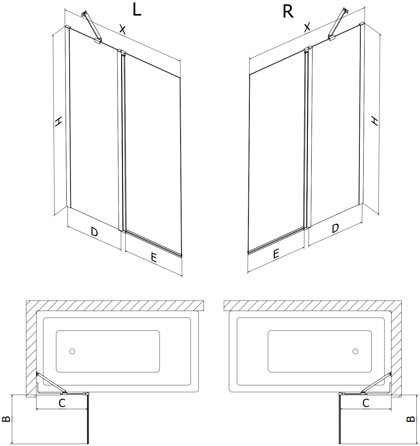 Grazie all'uso di un sistema di montaggio universale, il paravento può essere montato a destra o a sinistra, a seconda delle necessità. In questo modo puoi progettare facilmente una doccia adatta allo spazio del bagno.