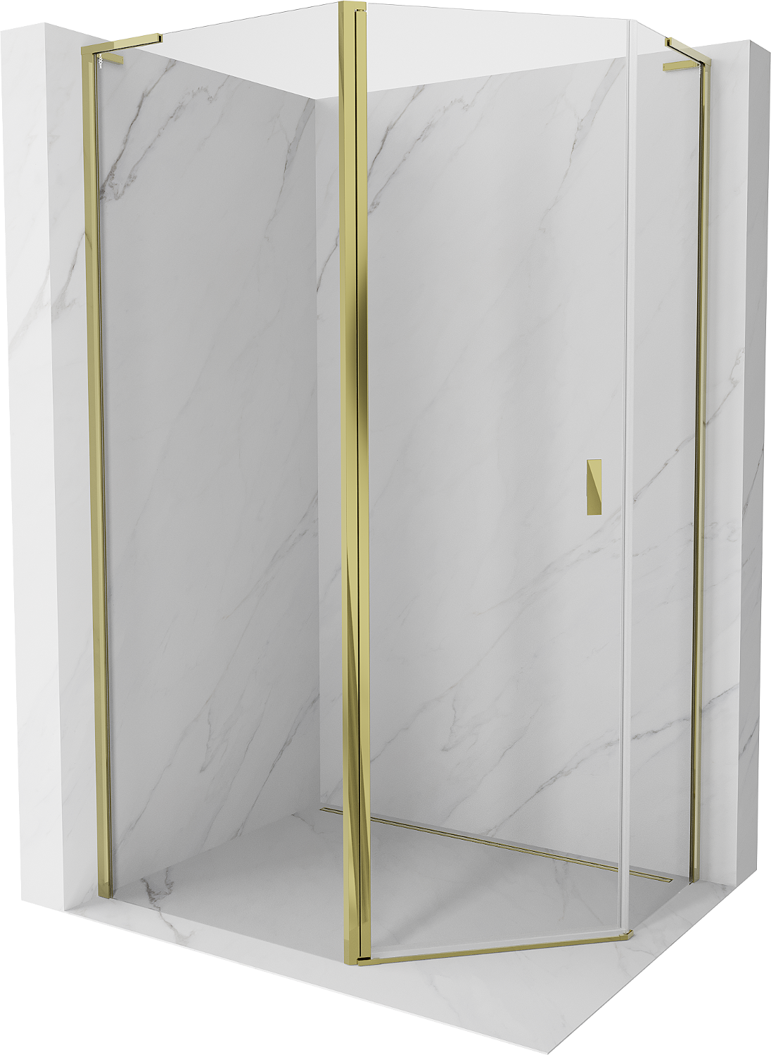 Mexen Mist L cabina doccia pentagonale asimmetrica a battente 100 x 90 cm, trasparente, oro - 8A8L-100-090-50-00