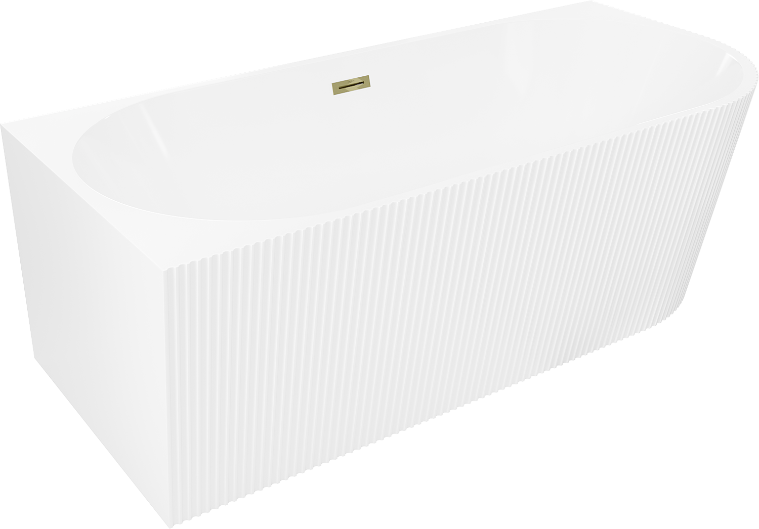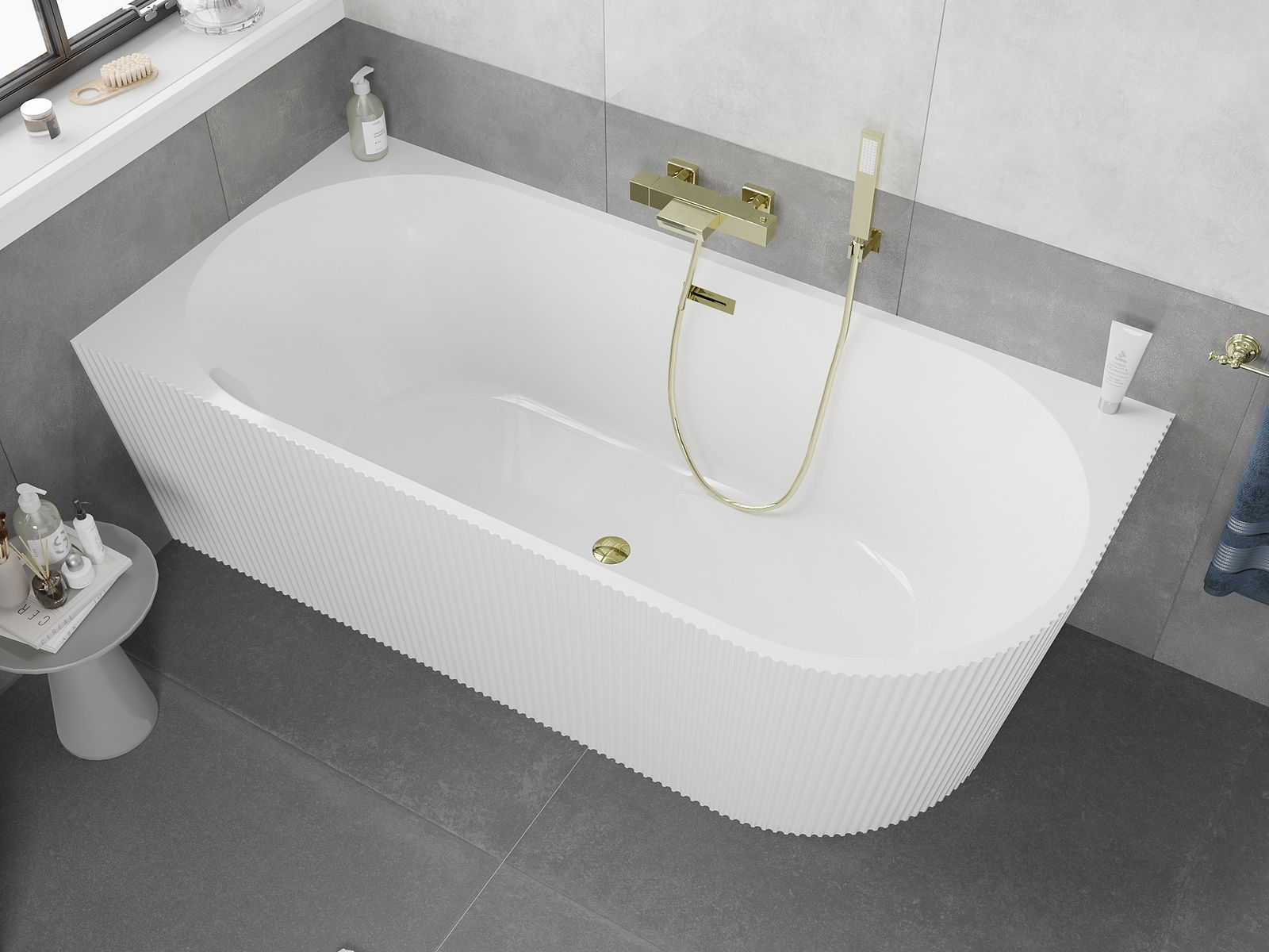 Mexen Silo vasca da bagno indipendente angolare sinistra scanalata 150 x 75 cm, bianca, troppopieno dorato - 52891507500L-50