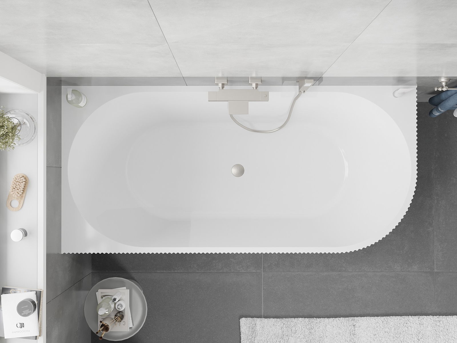 È un materiale moderno che combina un aspetto elegante con un'elevata durata. È resistente ai danni meccanici, facile da pulire e piacevole al tatto. La forma trasparente e il bordo sottile della vasca le conferiscono leggerezza e un carattere unico, creando un effetto accattivante nell'arredo bagno.