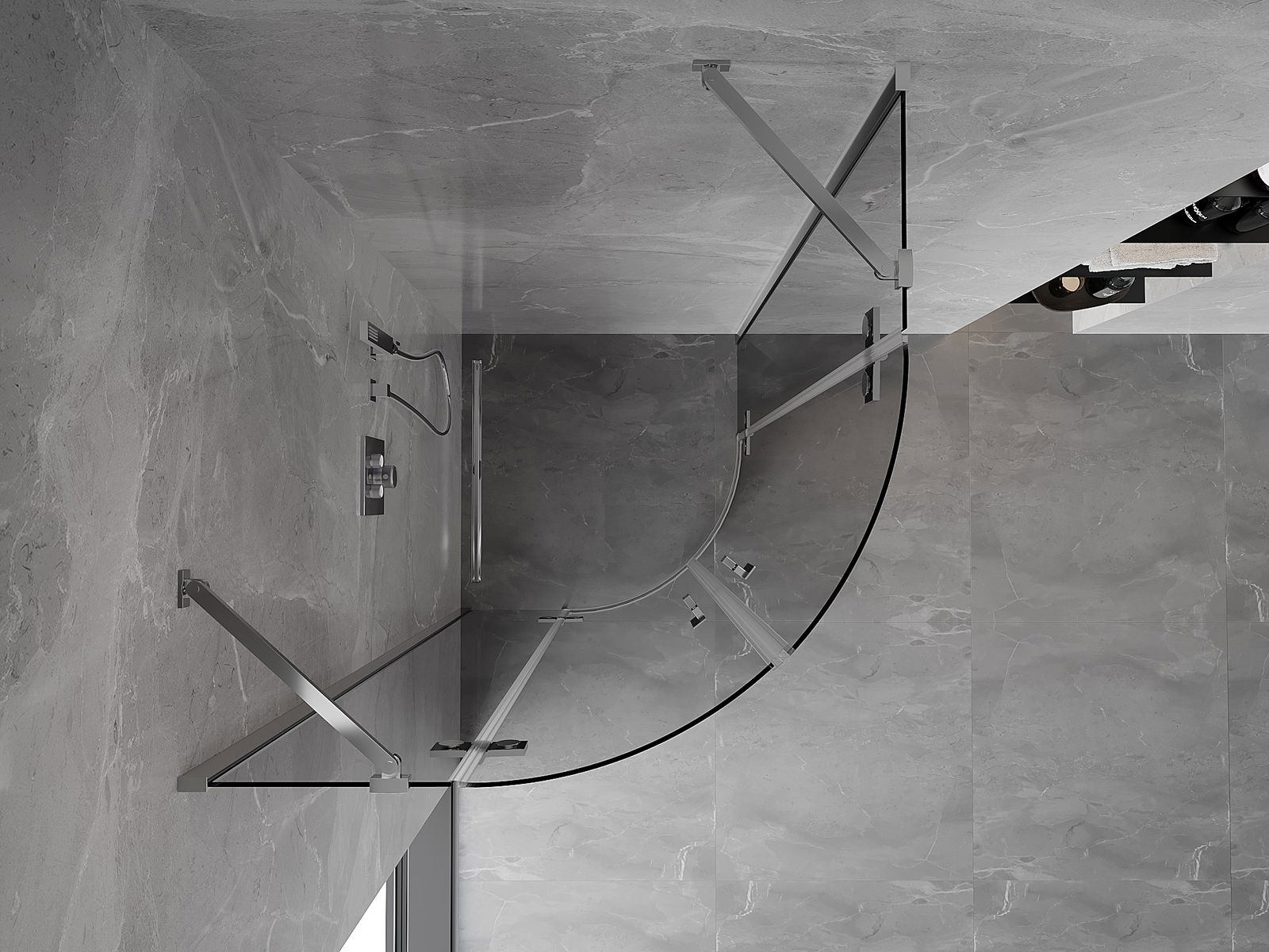 Il prodotto, a seconda delle esigenze, può essere installato sia sul piatto doccia che direttamente sul pavimento. Il metodo di installazione universale consente di adattare il prodotto a diversi tipi di bagni e configurazioni di spazio.