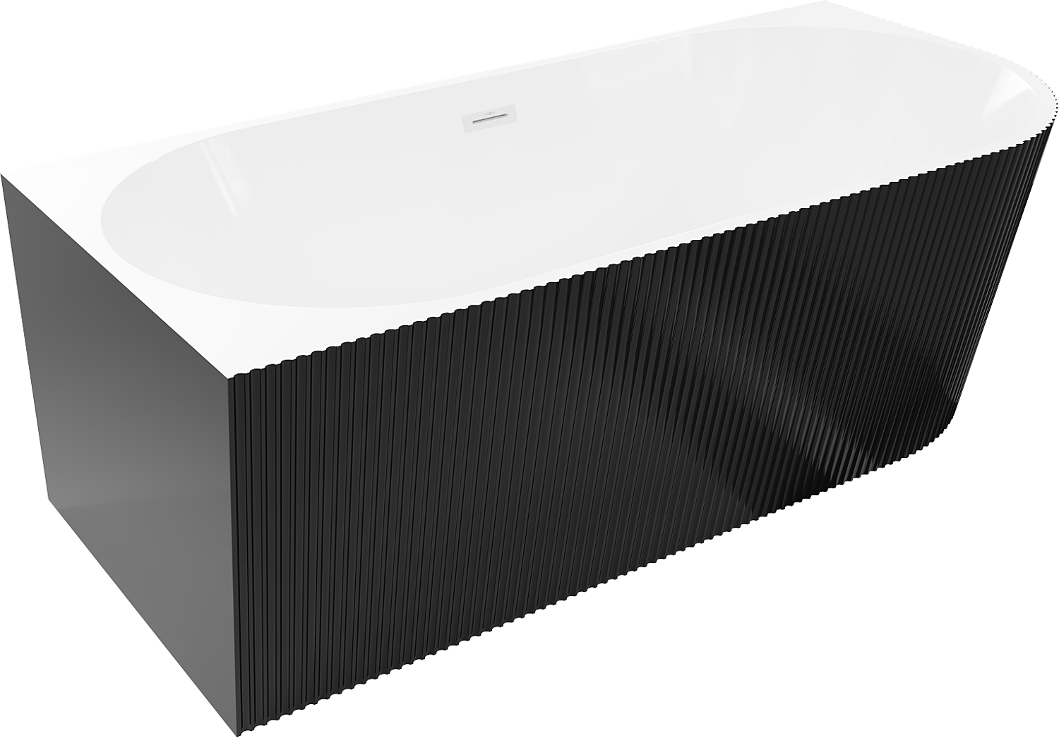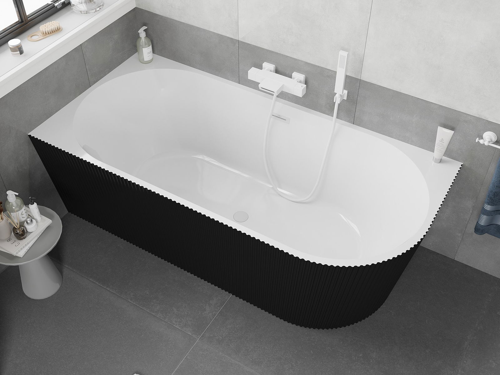 Mexen Silo vasca da bagno freestanding ad angolo sinistro rigata 150 x 75 cm, bianca/nera, troppopieno bianco- 52891507575L-20
