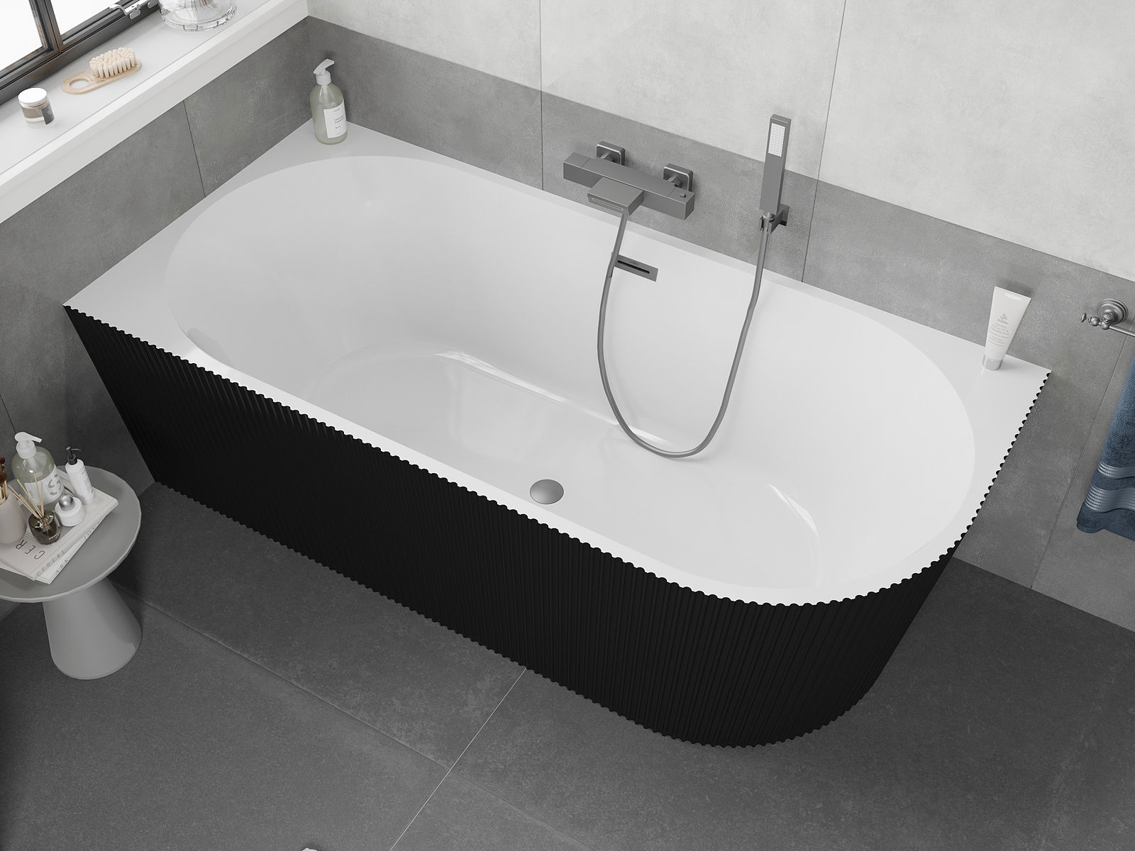 Mexen Silo vasca freestanding angolare sinistra scanalata 170 x 80 cm, bianca/nera, troppopieno gun metal - 52891708075L-95