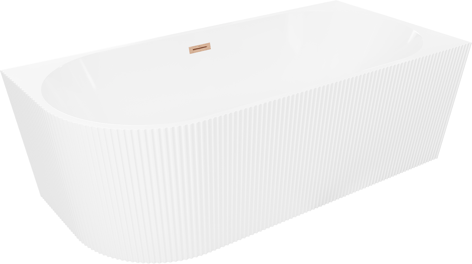 Mexen Silo vasca da bagno freestanding angolare destra rigata 150 x 75 cm, bianca, troppo pieno rame spazzolato