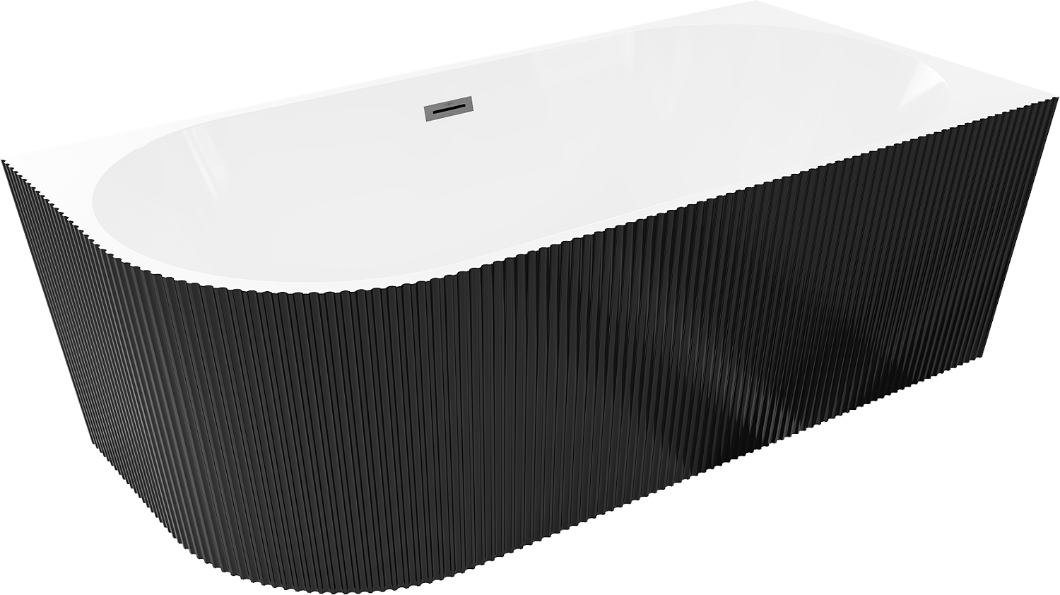 Mexen Silo vasca da bagno freestanding ad angolo destro scanalata 170 x 80 cm, bianca/nera, troppopieno grigio canna di fucile