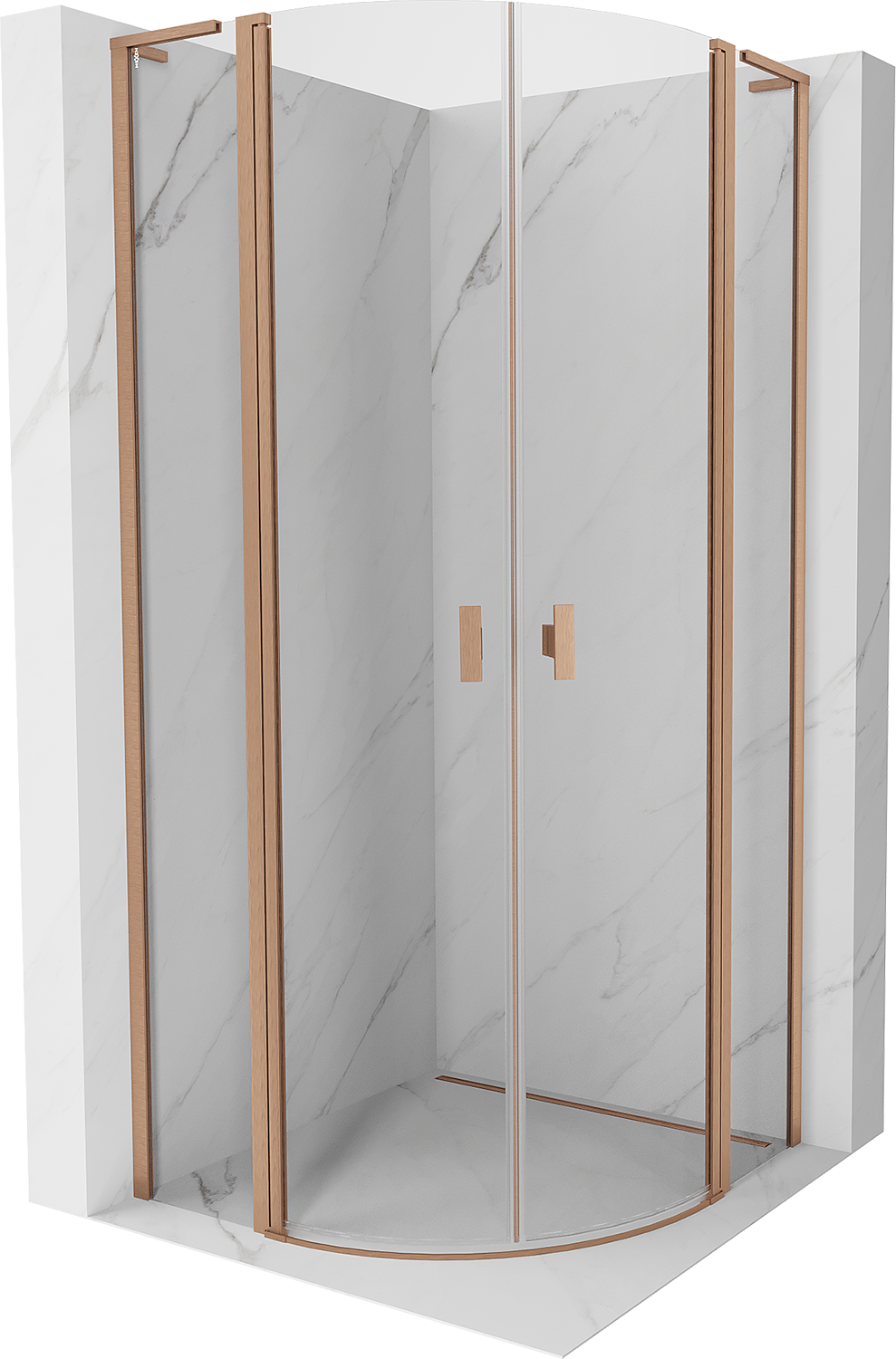 Mexen Mist L cabina doccia semicircolare a battente 90 x 90 cm, trasparente, rame spazzolato - 8A32L-090-090-65-00