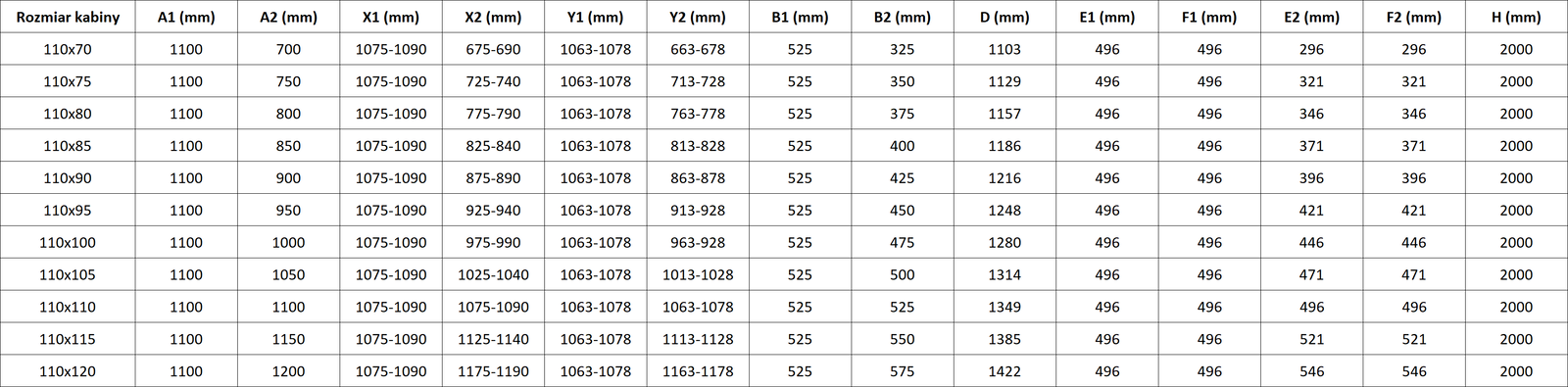 Dimensione: 110x90 cm (porta sinistra 110 cm, porta destra 90 cm)