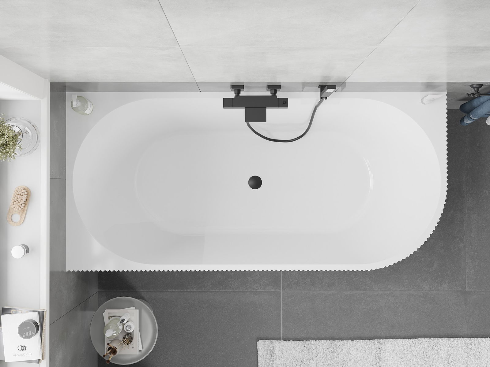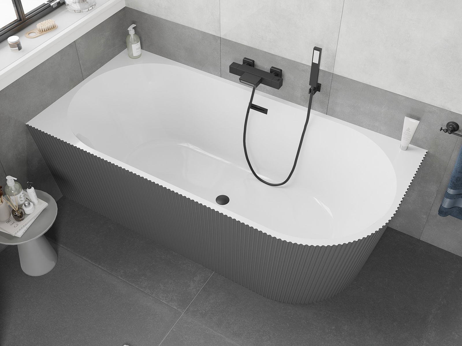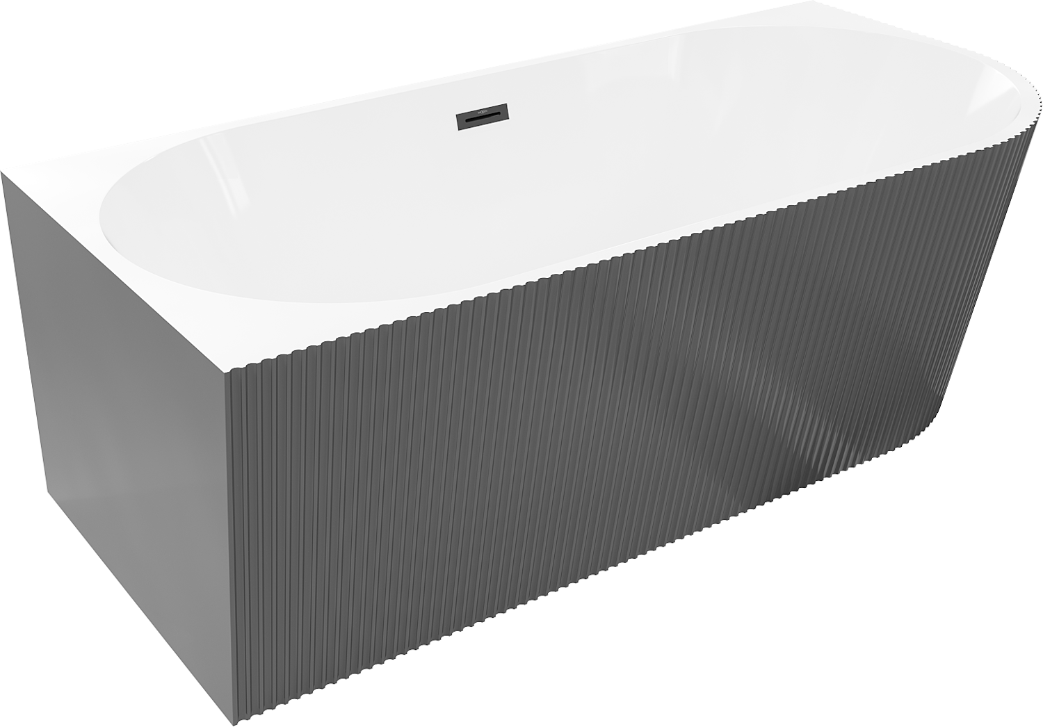Mexen Silo vasca da bagno ad angolo sinistra freestanding rigata 170 x 80 cm, bianca/grigia, troppopieno nero - 52891708062L-70