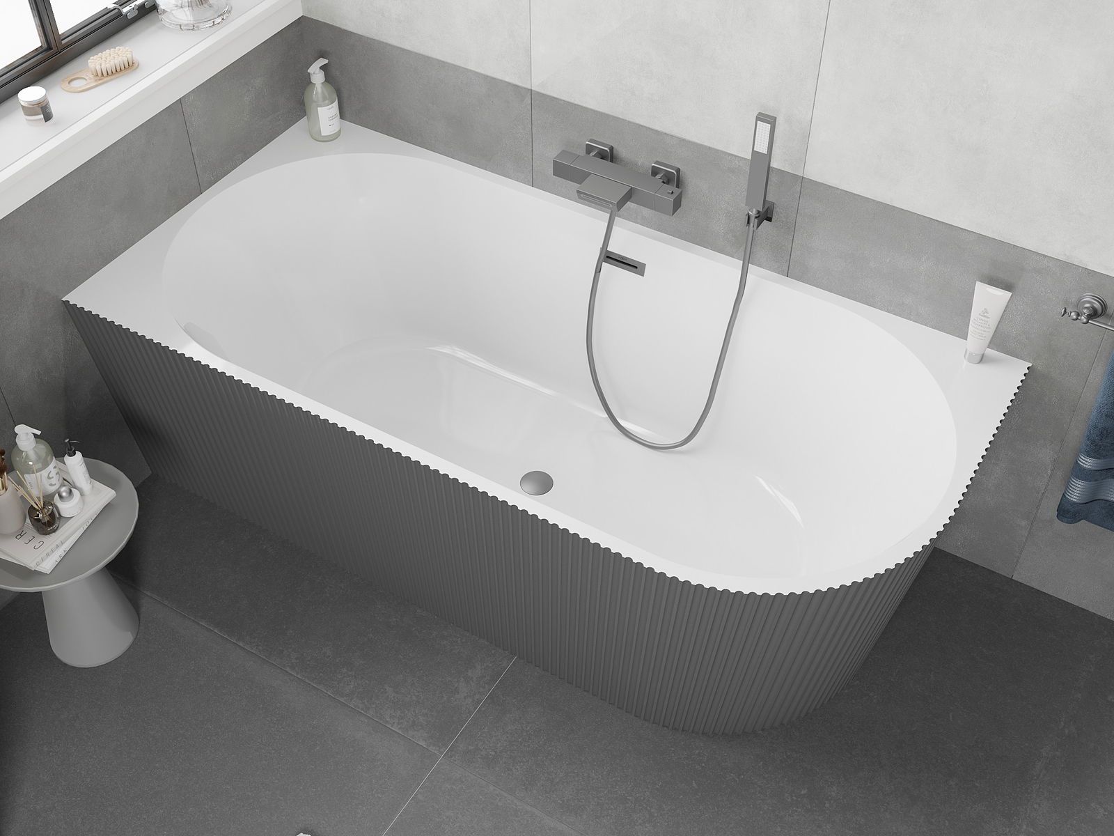 Mexen Silo vasca da bagno indipendente angolare sinistra rigata 170 x 80 cm, bianco/grigio, troppopieno metallico