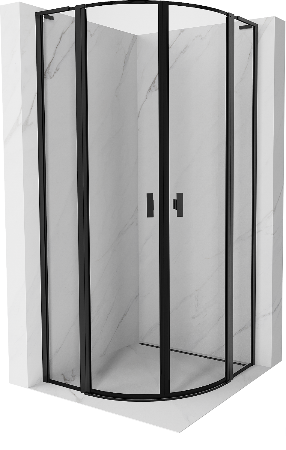 Mexen Mist L cabina doccia semicircolare ad anta battente 100 x 100 cm, cornice nera, nera - 8A32L-100-100-70-70