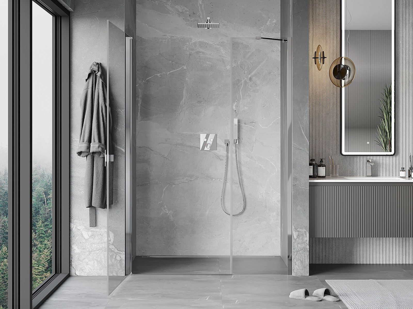 Il prodotto, a seconda delle esigenze, può essere installato sia sul piatto doccia che direttamente sul pavimento. Il metodo di installazione universale consente di adattare il prodotto a diversi tipi di bagni e configurazioni di spazio.