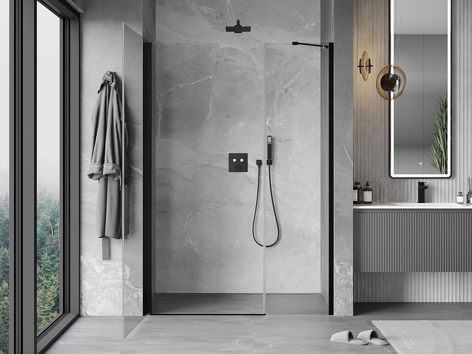L'impugnatura pratica e comoda è realizzata in metallo durevole e resistente. La forma alla moda combinata con una finitura abbinata al colore dei profili conferisce all'insieme un aspetto moderno e elegante, enfatizzando l'estetica di ogni bagno.