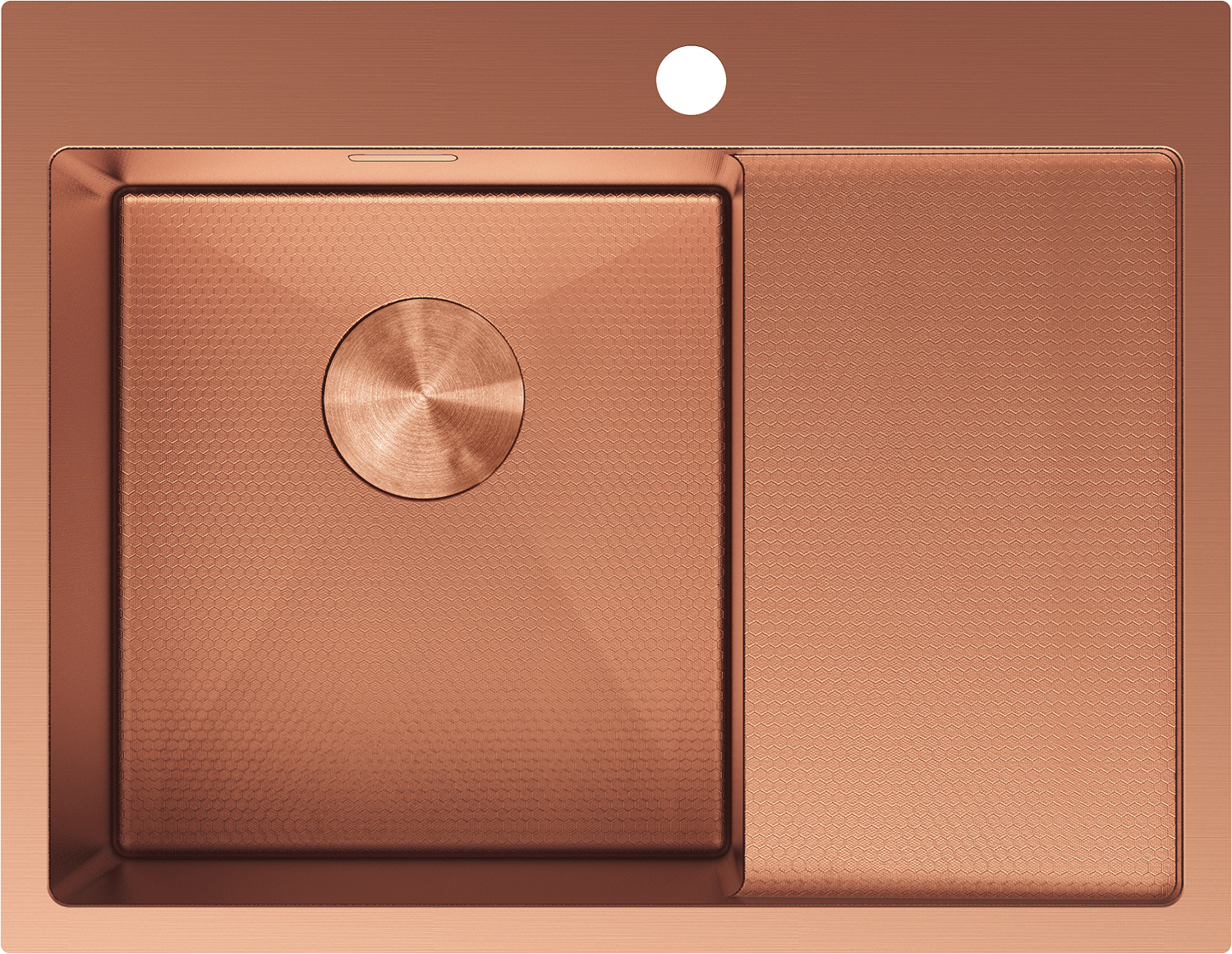 Mexen Exar lavello in acciaio inox a 1 vasca con gocciolatoio, sinistro 620 x 480 mm, rame HC - 6431621005L-65HC