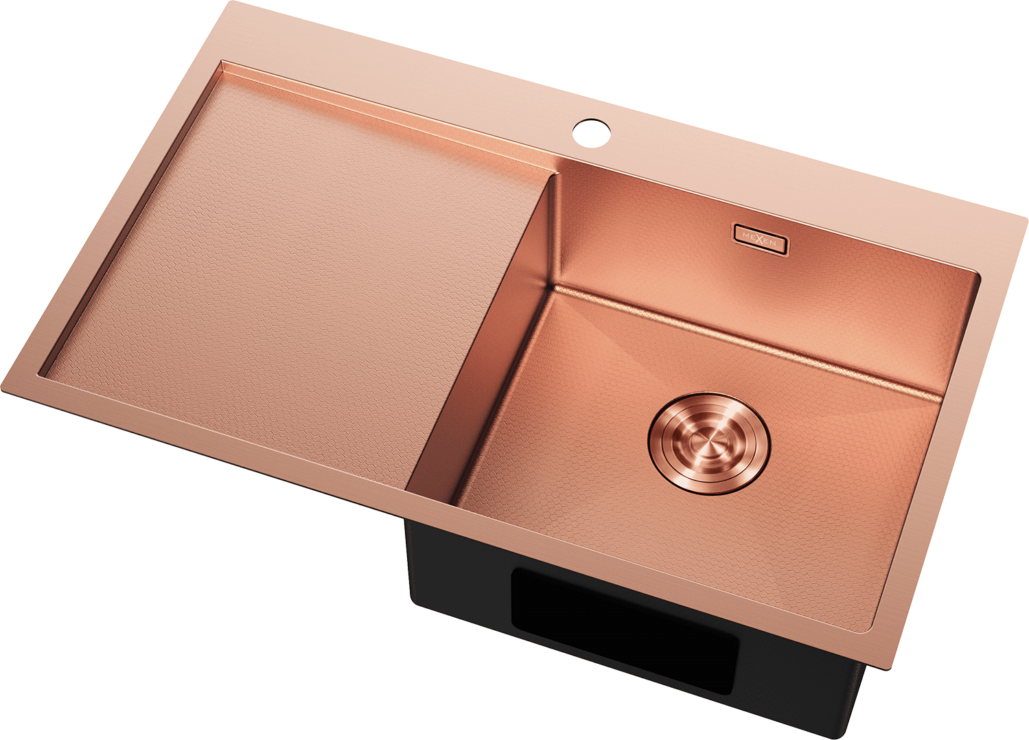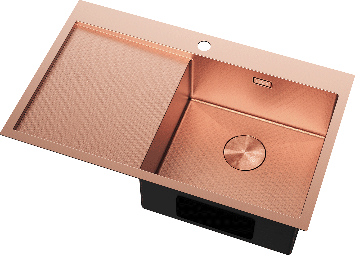 Mexen Exar lavello in acciaio inox a 1 vasca con scolapiatti, destro 780 x 480 mm, rame HC - 6434781010P-65HC