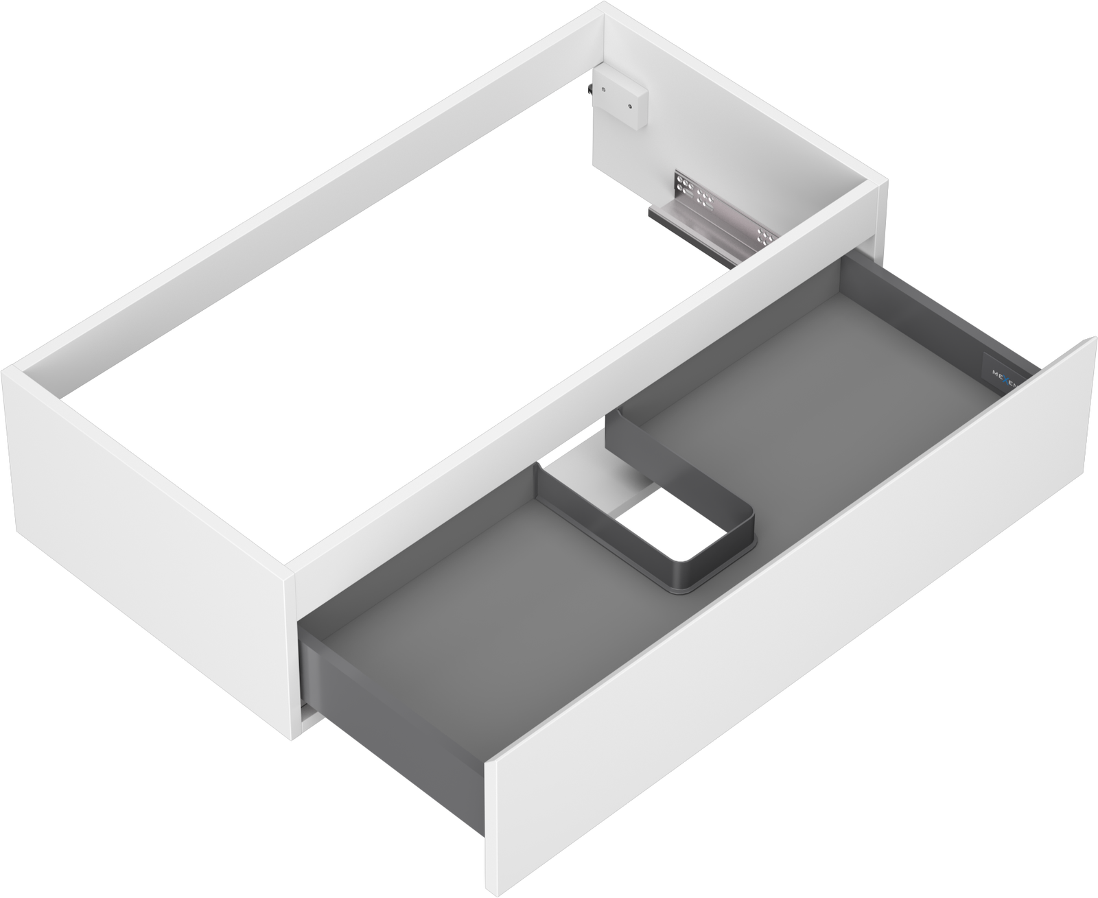 Il ritaglio nel cassetto è progettato in modo da ospitare il sifone, che è necessario nelle installazioni dei lavandini. Grazie a ciò, il mobile può essere montato in modo completamente funzionale, senza dover rinunciare allo spazio nel cassetto a favore dell'installazione.